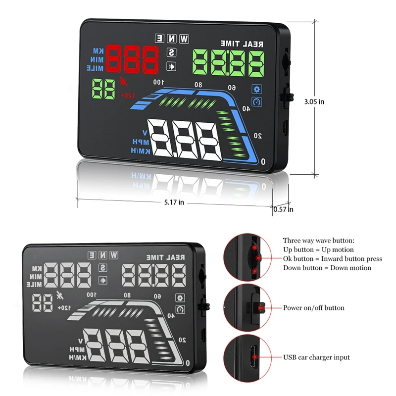 6. Auto power on and off with vehicle started and shutdown, effective protection of the car battery; while retaining the manual switch mode, and more easy to control HUD.