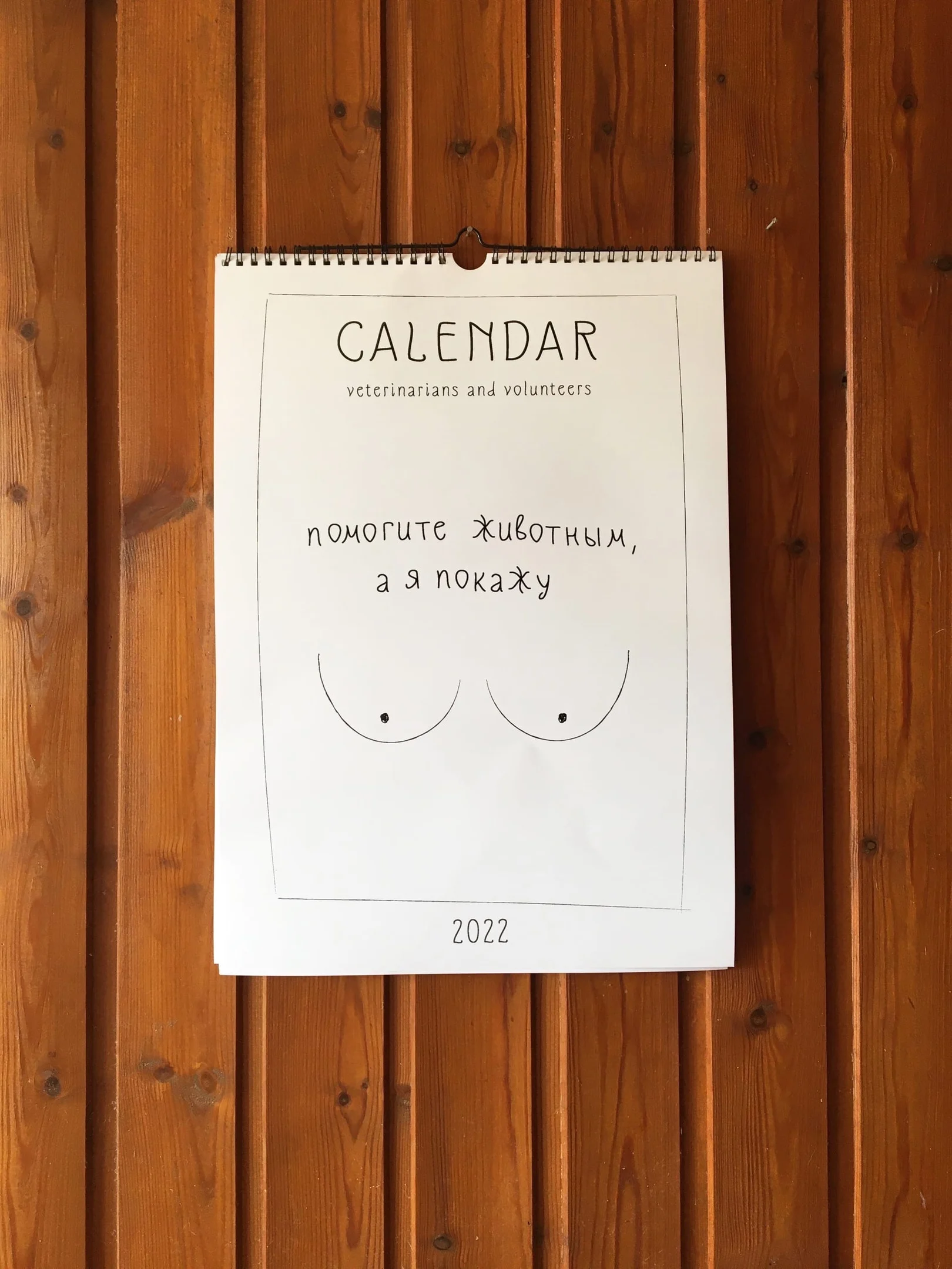 Календарь "Veterinarians and volunteers" это благотворительный проект, вся прибыль которого пойдет на благоустройство приюта и необходимые товары для животных. Аналогичные календари регулярно выпускаются в Европе, имеют большой успех и приносят пользу. Пришло время попробовать в России. Проблема бездомных животных остро стоит в России. И это экстремальное привлечение внимания, ведь на ветеринарах и волонтерах участвовавших в фотосессии, нет одежды. Как и нет ретуши. В календаре вы найдете эстетику, естественную красоту животных и человека и не найдете нижнего белья. При этом нет никаких призывных поз, лишь искусство и идея. На фотографиях нет открытой груди, но не спешите думать что обложка - это обман. На каждой странице интегрирована иллюстрация груди, которую придется поискать. Это наше маленькое хулиганство, которое мы разрешили себе позволить. Надеюсь наш проект понравится нам так же сильно, как и нам. Неважно, покупаете ли вы чтобы поддержать идею, помочь животным или увидеть голых девушек. Важно то, что животные получат еду и возможно найдут дом. А это и есть смысл проекта.