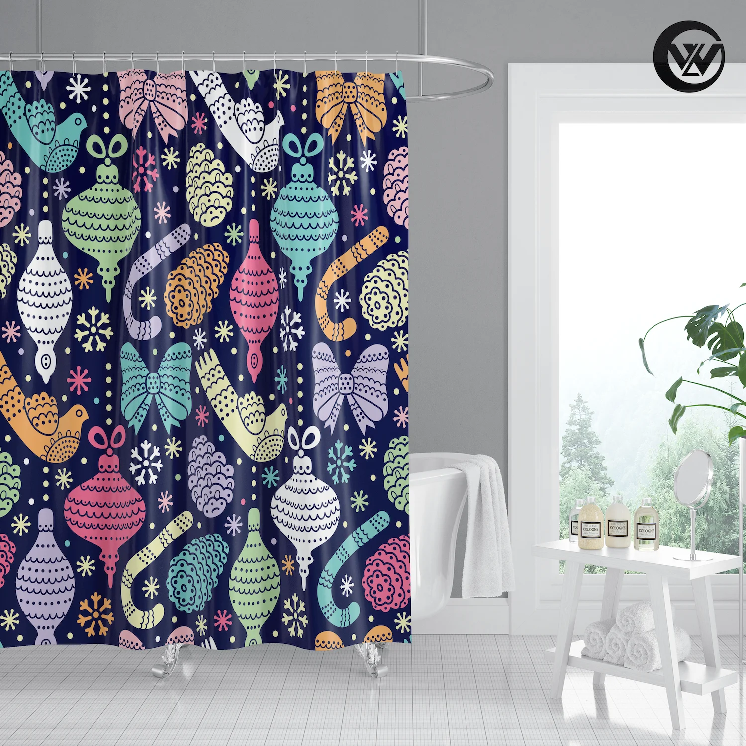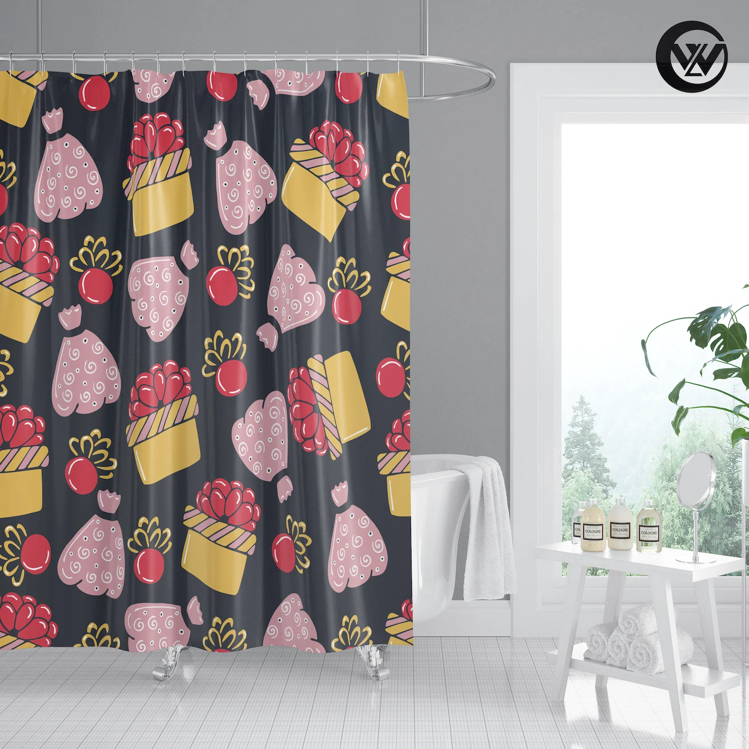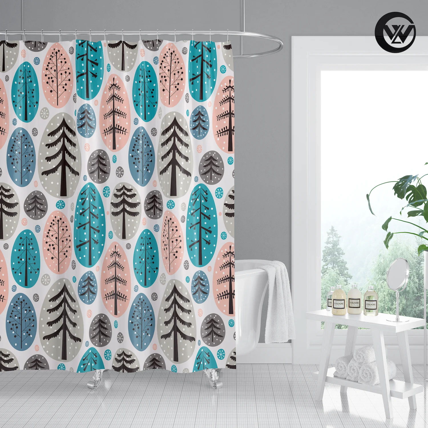 3. Принт с уникальным рисунком, драпировка придает чистый свежий вид вашей ванной.