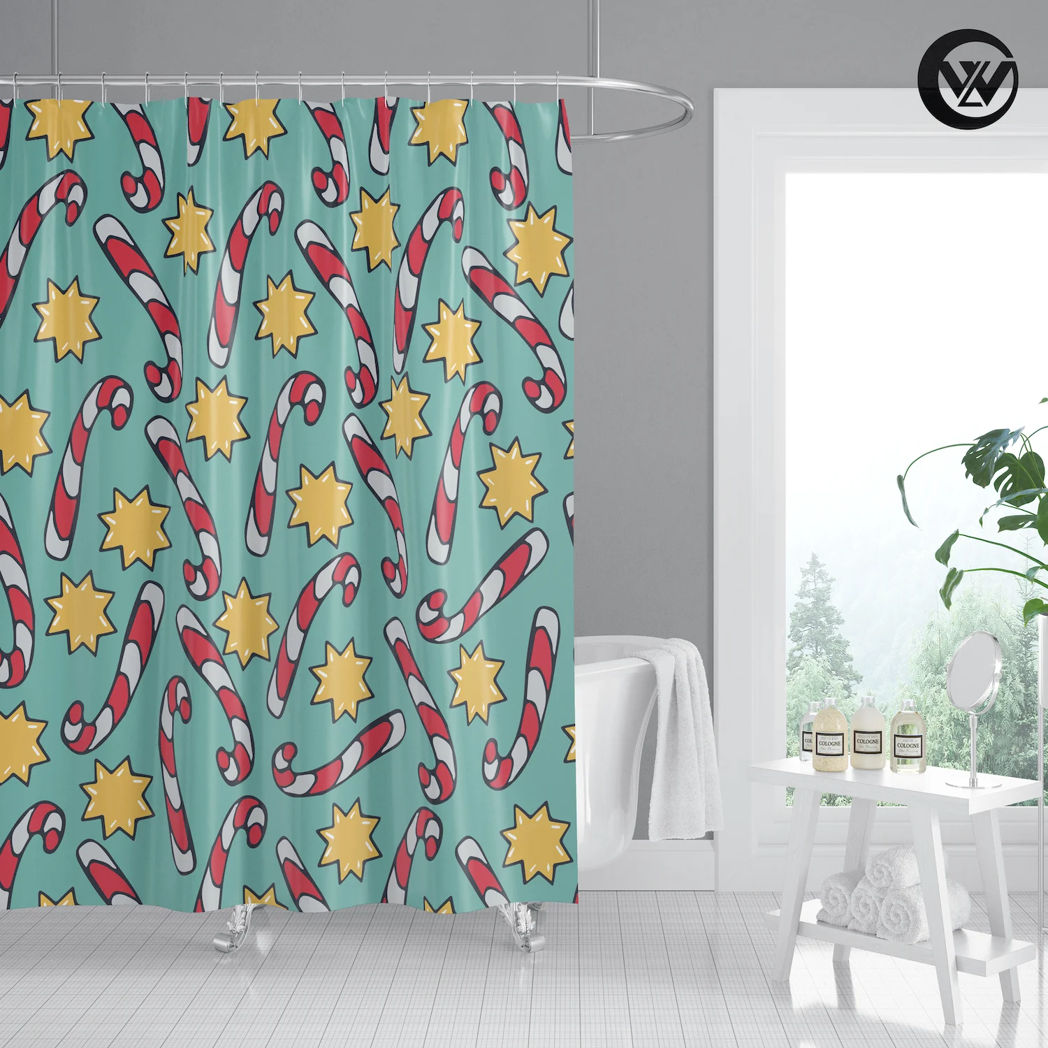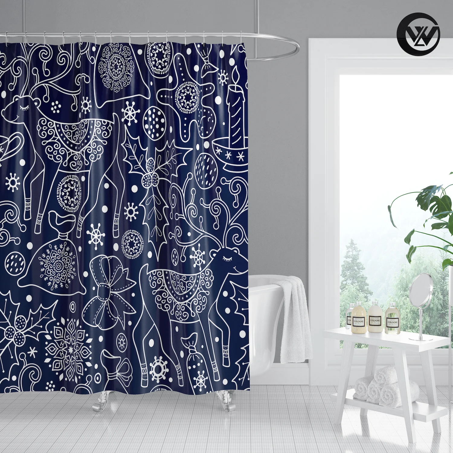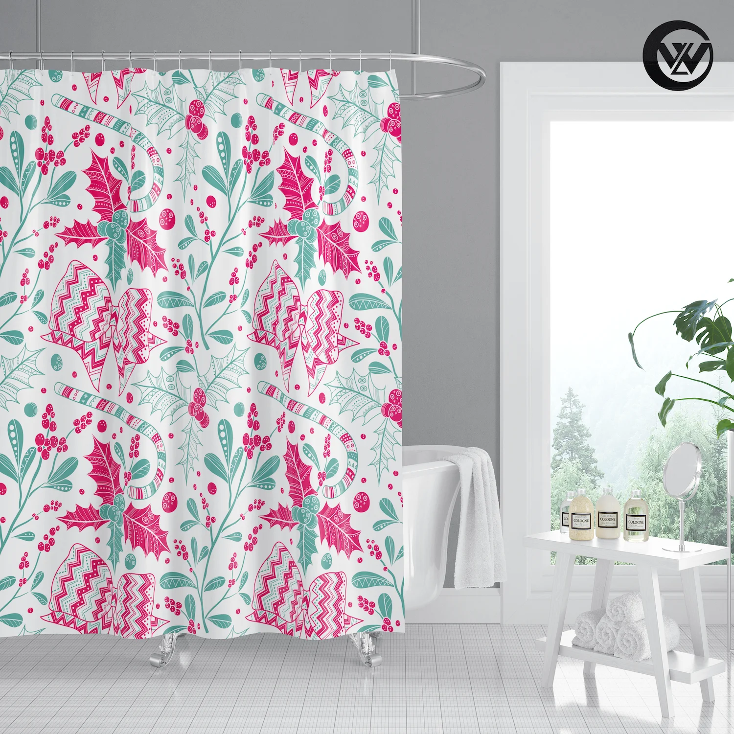 3. Принт с уникальным рисунком, драпировка придает чистый свежий вид вашей ванной.