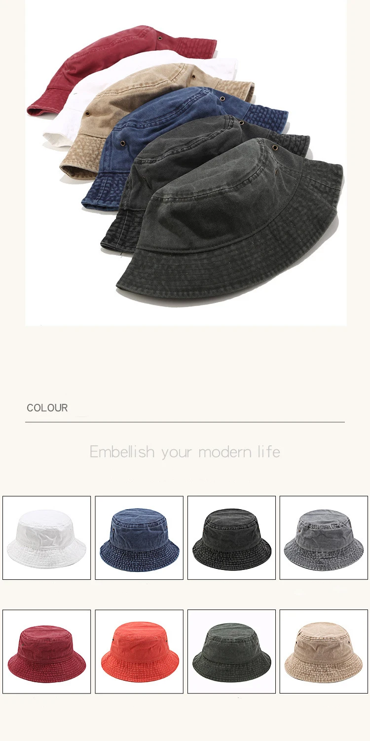 2022New Fisherman Hat Panama Denim Bucket Hats Outdoor Men Women Washed Cotton Bucket Cap Fashion Hip Hop Gorros Bob Hat