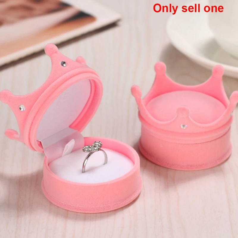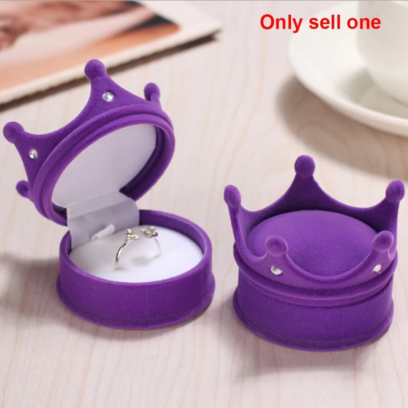 Crown Shape Lovely Flannel Wedding Engagement Ring Box For Earrings Jewelry Display Gift Box Holder