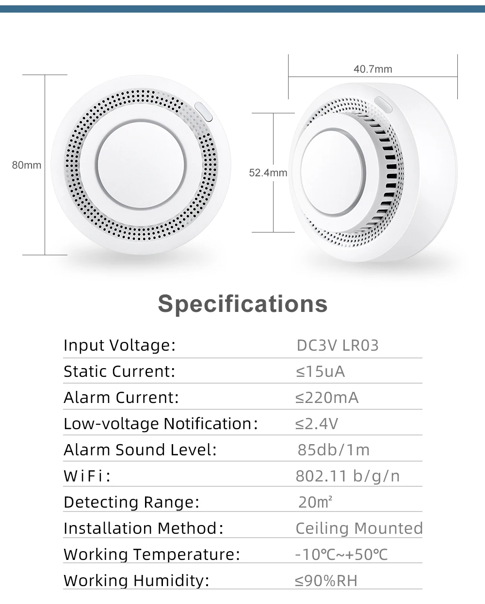 3. Этот детектор дыма разработан с функцией низкого напряжения и faultprompt и предупредит, когда низкая мощность, с функцией самостоятельного тестирования.