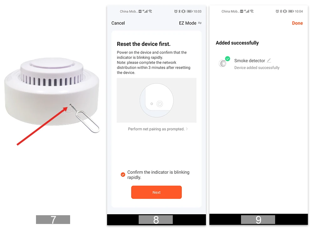 Снова откройте приложение EseeCloud для подключения детектора дыма Wi-Fi.