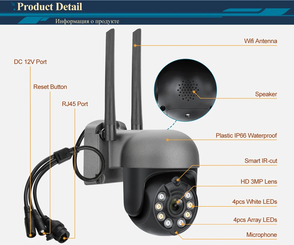 * Интеллектуальное Ai гуманоидное обнаружение, для элемента не срабатывает сигнал тревоги. И когда кто-то двигается, камера wifi автоматически отслеживает тело.