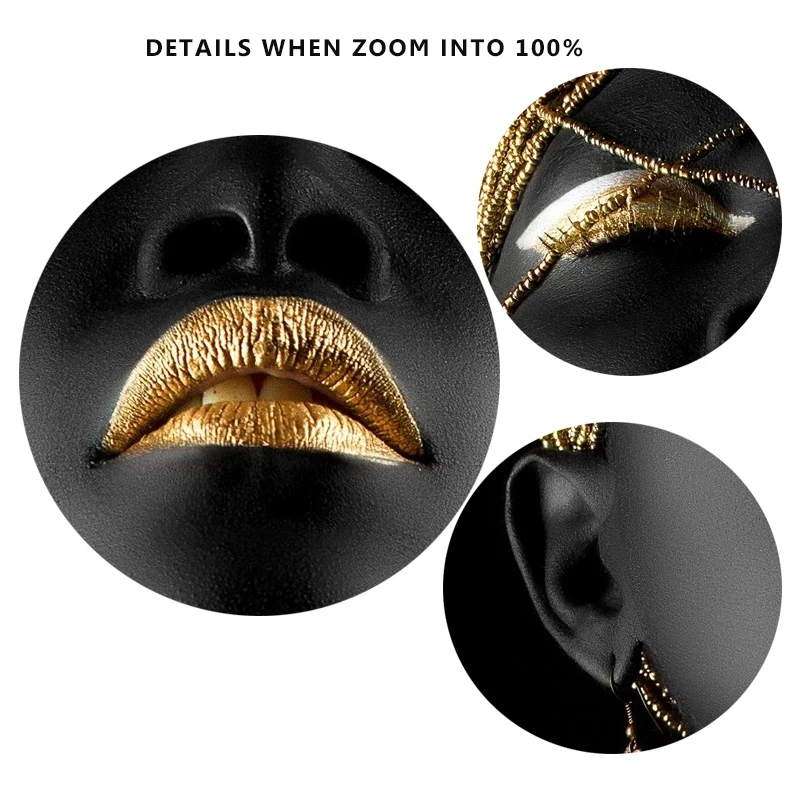 Pattern: Africa Black Girl Turn head/Eyes closed/Wear gold/One-handed/Hands folded