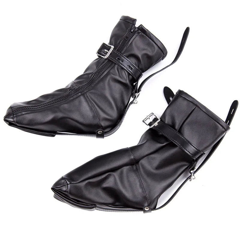 BDSM Feet Fetish Leather Harness Cuffs Leg Bondage Socks Foot Restraint Bag Boots with Zipped Straps Adult Games Erotic Sex Toys