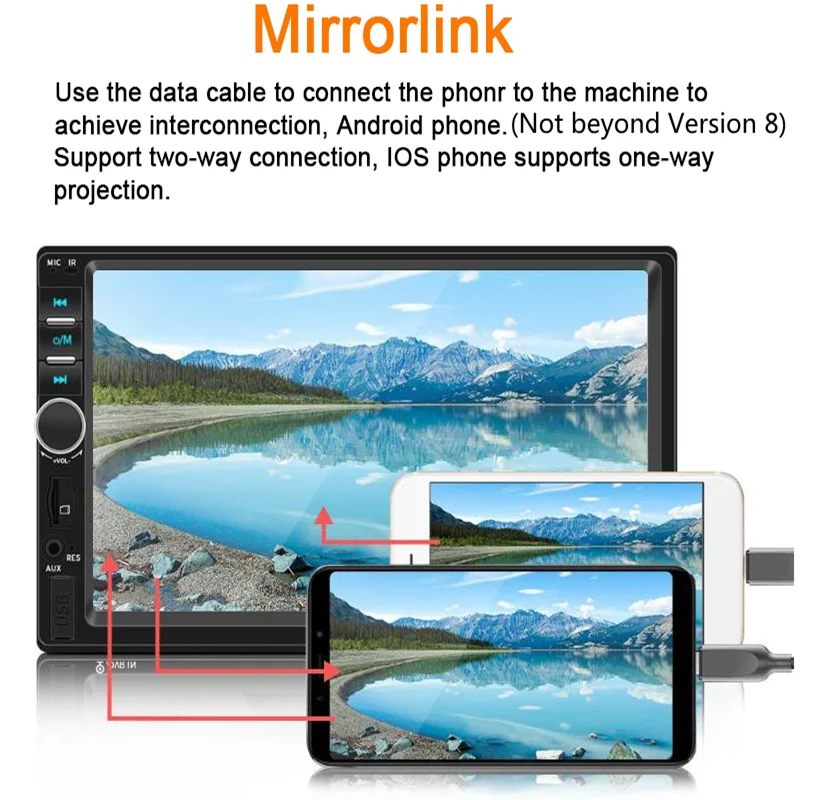 Функция mirror link относится к версии Android 5,0 ~ 10,0. (Некоторые из телефонов Android 4,4 и Samsung могут не подходить идеально) это не относится к iPhone.