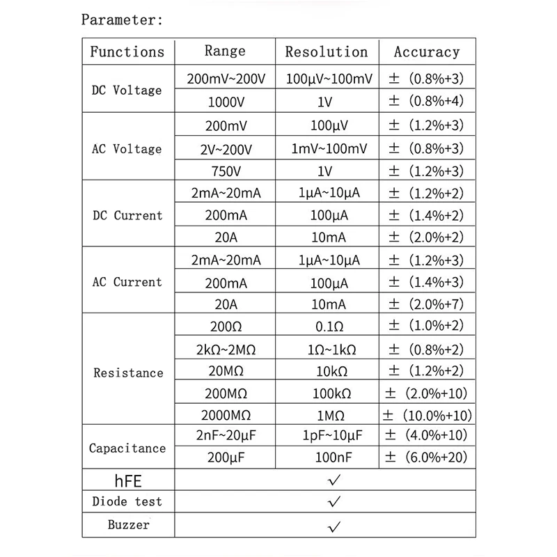 Профессиональный мультиметр Цифровой DT9205A Ручной тестер HFE емкость AC DC 1000V 20A измеритель напряжения транзистор тестер