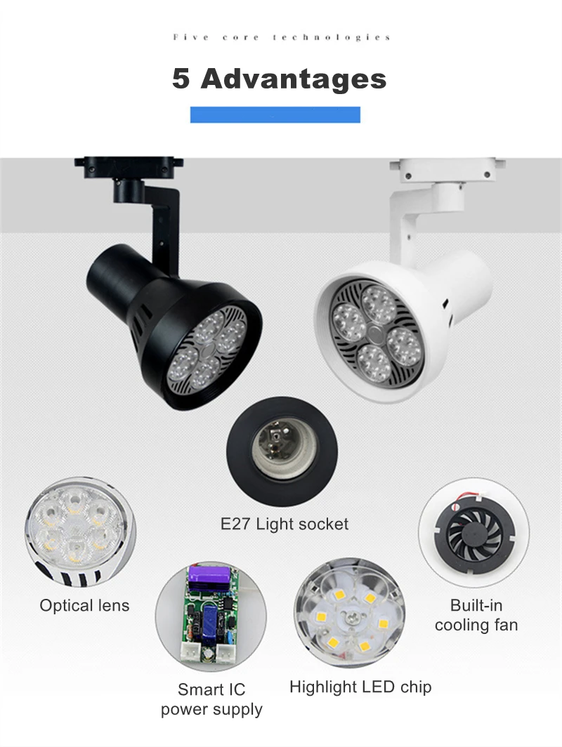 PAR30 E27 светодиодный Трековый светильник 35 Вт 40 Вт 45 Вт ультра яркий Вращающийся Регулируемый рельсовый Точечный светильник для магазинов одежды светильник магазин одежды бар коммерческий светильник ing