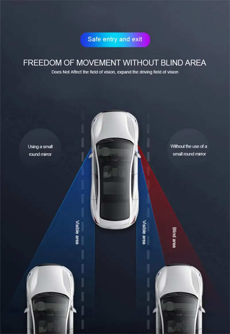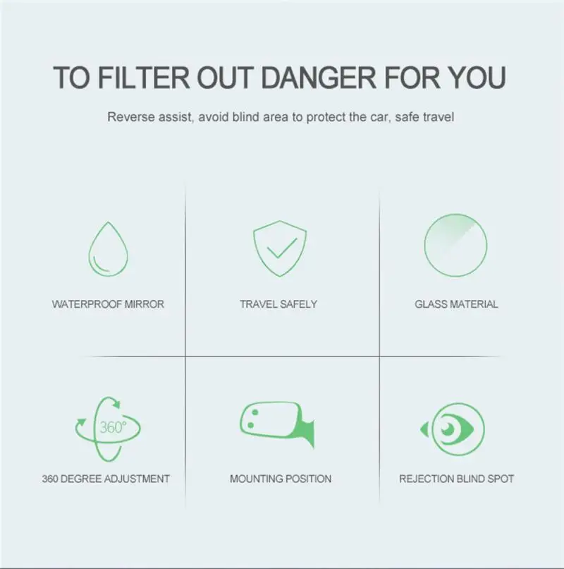 Фильтруйте опасности для вас, помогайте в движении, избегайте слепых пятен, чтобы защитить ваш автомобиль, безопасно путешествуйте, водонепроницаемое зеркало, стеклянный материал, регулировка на 360 °, простая установка и отсутствие слепых пятен. Изогнутая зеркальная поверхность, увеличенное поле зрения. Отсос типа разборки и повторного использования, вакуумная ионная Адсорбция, может быть повторно использована. Обработка AF, водонепроницаемость зеркала. Внешний вид простой и благородный.