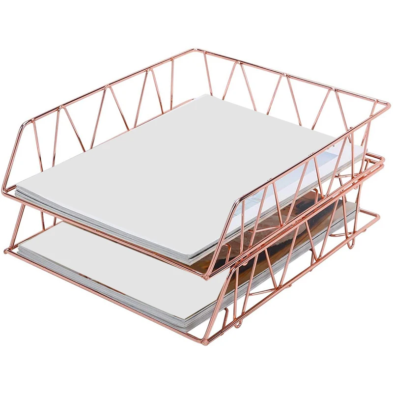 Настольный органайзер для файлов, металлический Штабелируемый Лоток для букв, подставка для бумаги, 2 упаковки, розовое золото