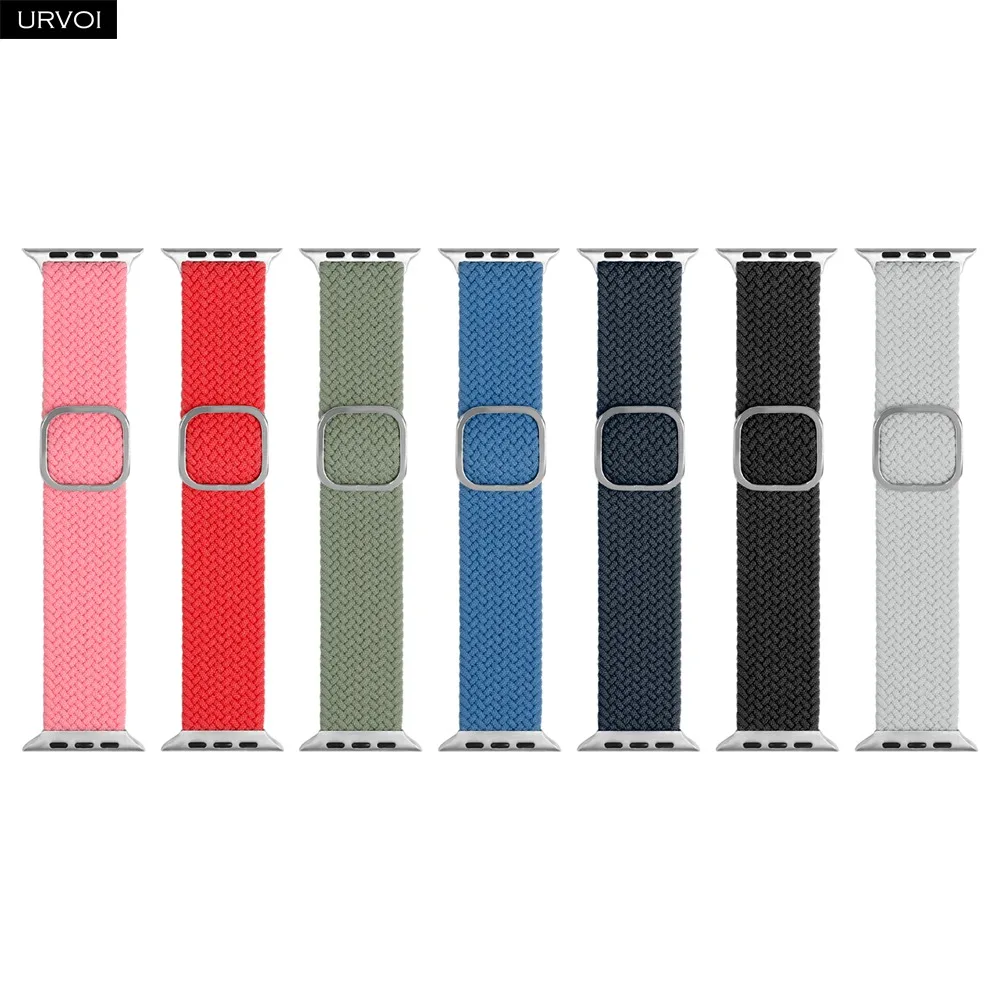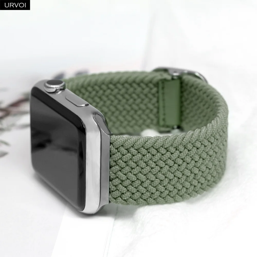 URVOI Плетеный ремешок для Apple Watch series 7 6 SE 5 4 3 однопетельный растягивающийся ремешок с регулируемой застежкой для iWatch 41 45 мм