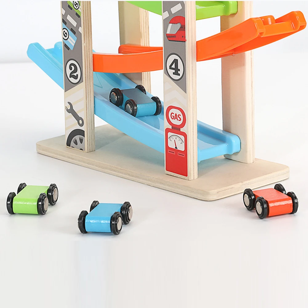 Деревянные трековые автомобильные игрушки, деревянная Автомобильная Рампа, игрушечная Автомобильная горка с 6 автомобилями, 4 слоя, слайдер, лестница, слот, трек для малышей, гоночный автомобиль, игрушки