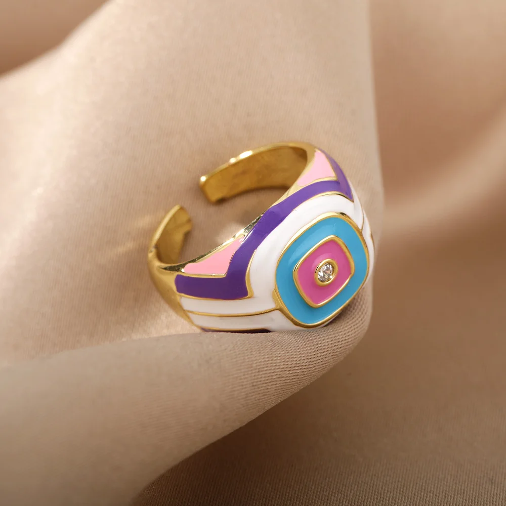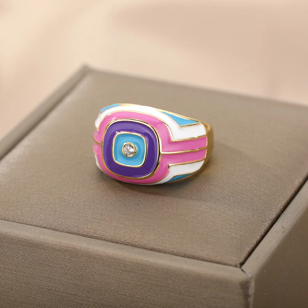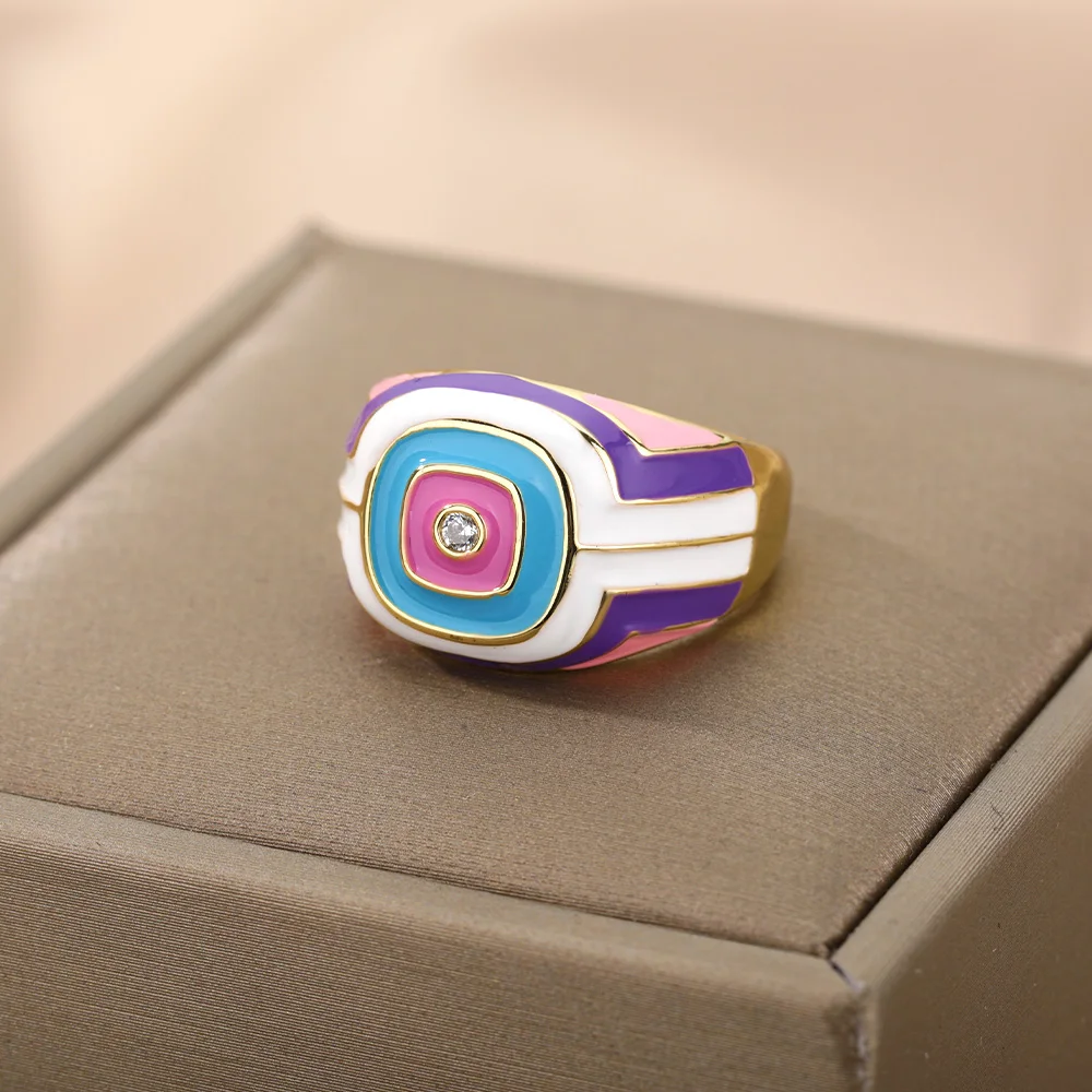 Красочные Квадратные Кольца с эмалью для женщин, геометрические открытые кольца из нержавеющей стали с капающим маслом для пары, винтажные богемные украшения, anillos