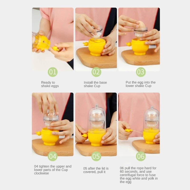Простота в использовании: Потяните веревку и яичный скремблер начал вращаться, отпустите руку и сделайте вас или детей счастливыми.