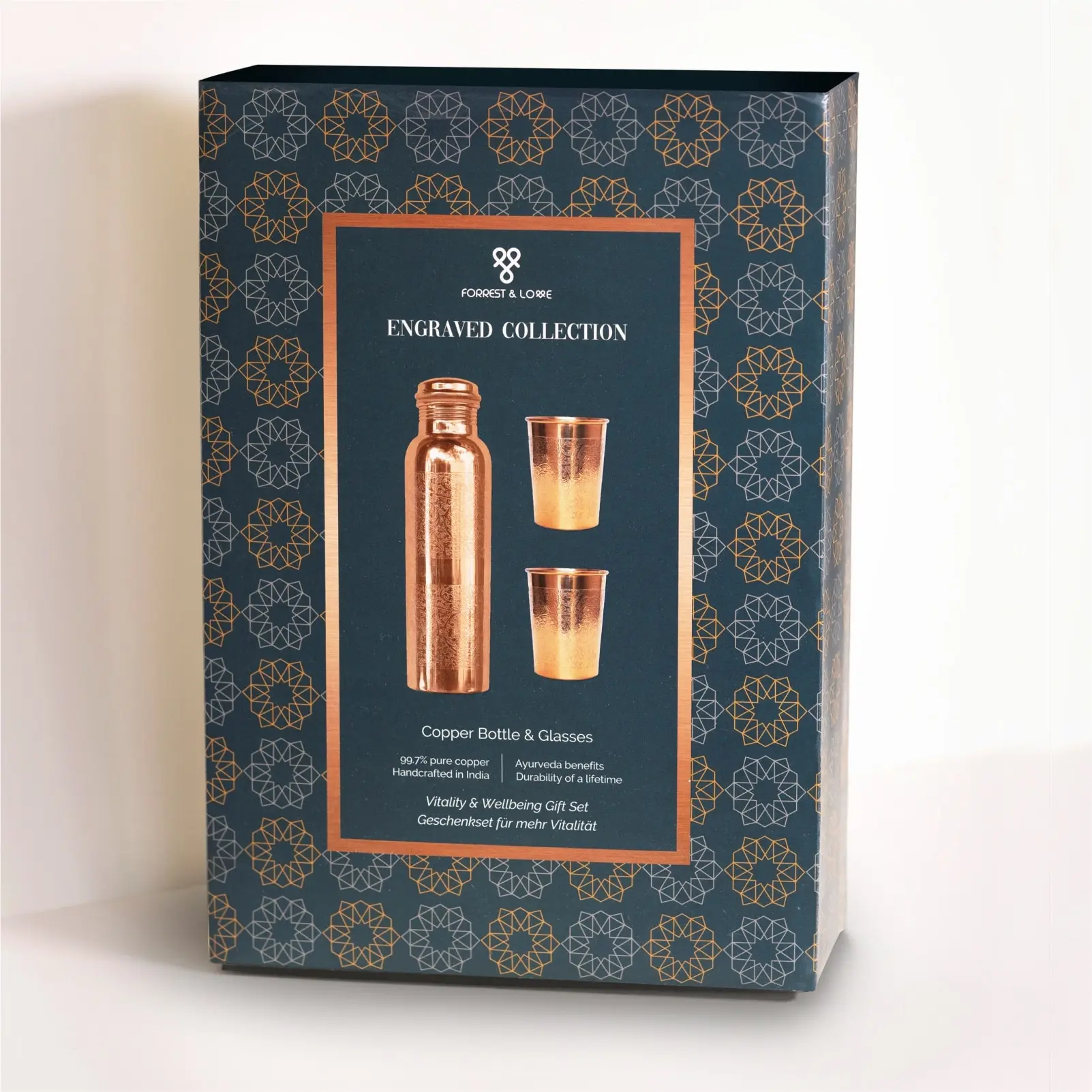 Оригинальное изделие немецкого бренда FORREST&LOVE. Подарочный набор с гравировкой станет идеальным подарком для тех, кто ценит царственную красоту, восточный колорит и величественное искусство.