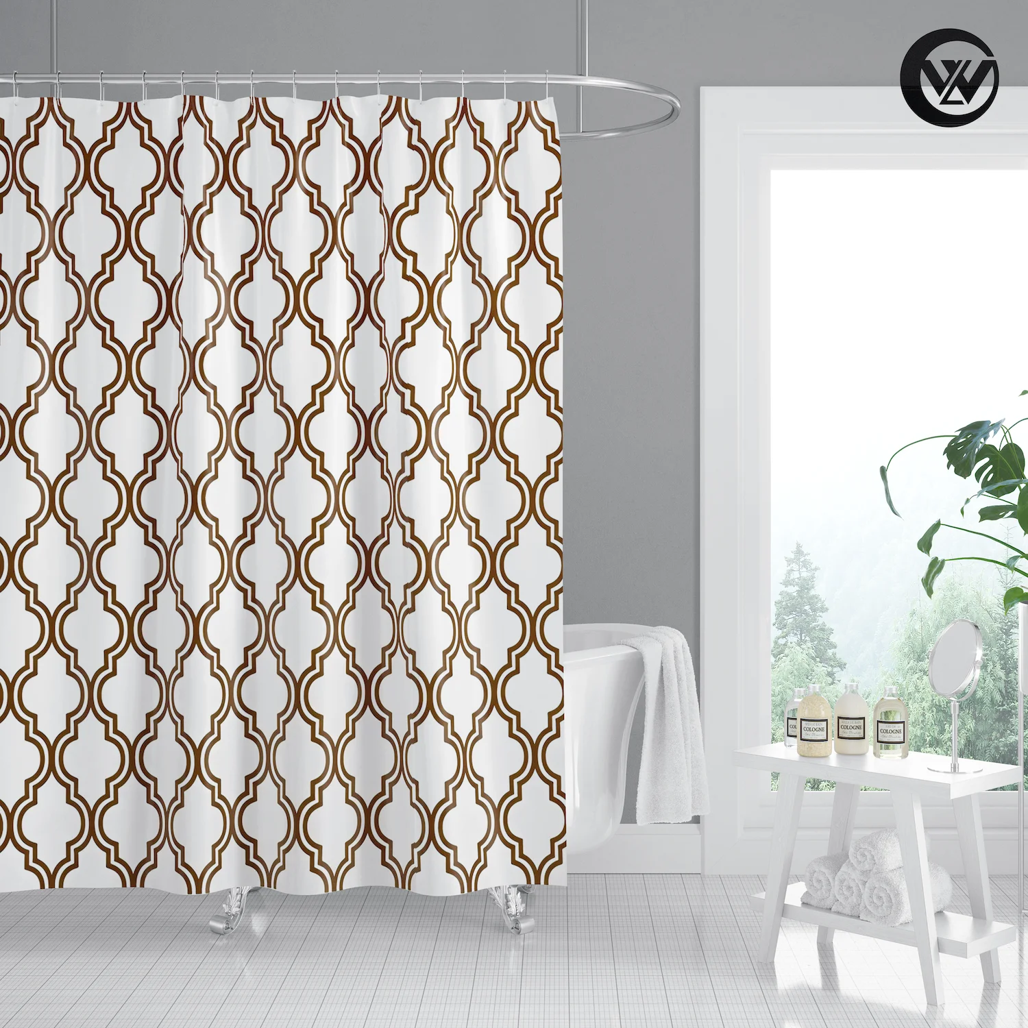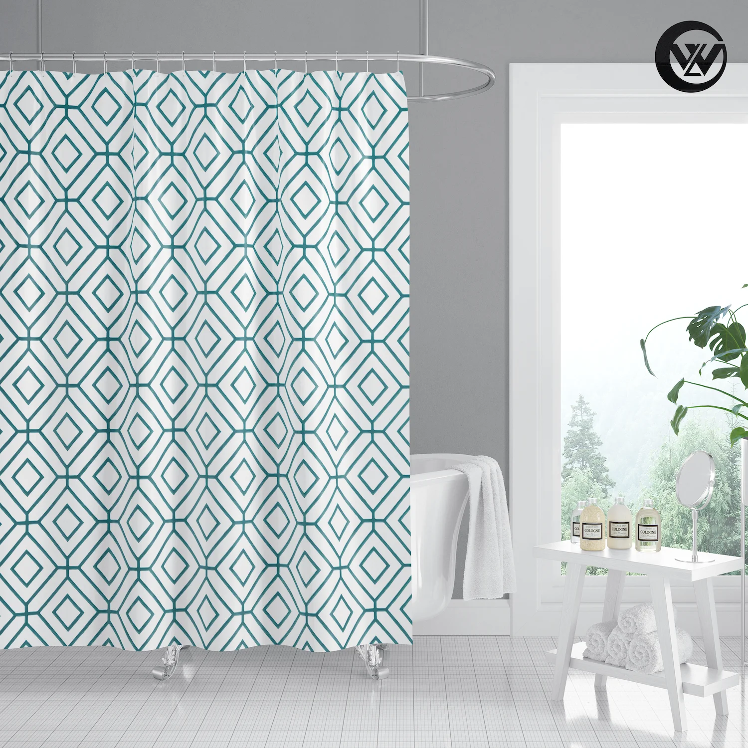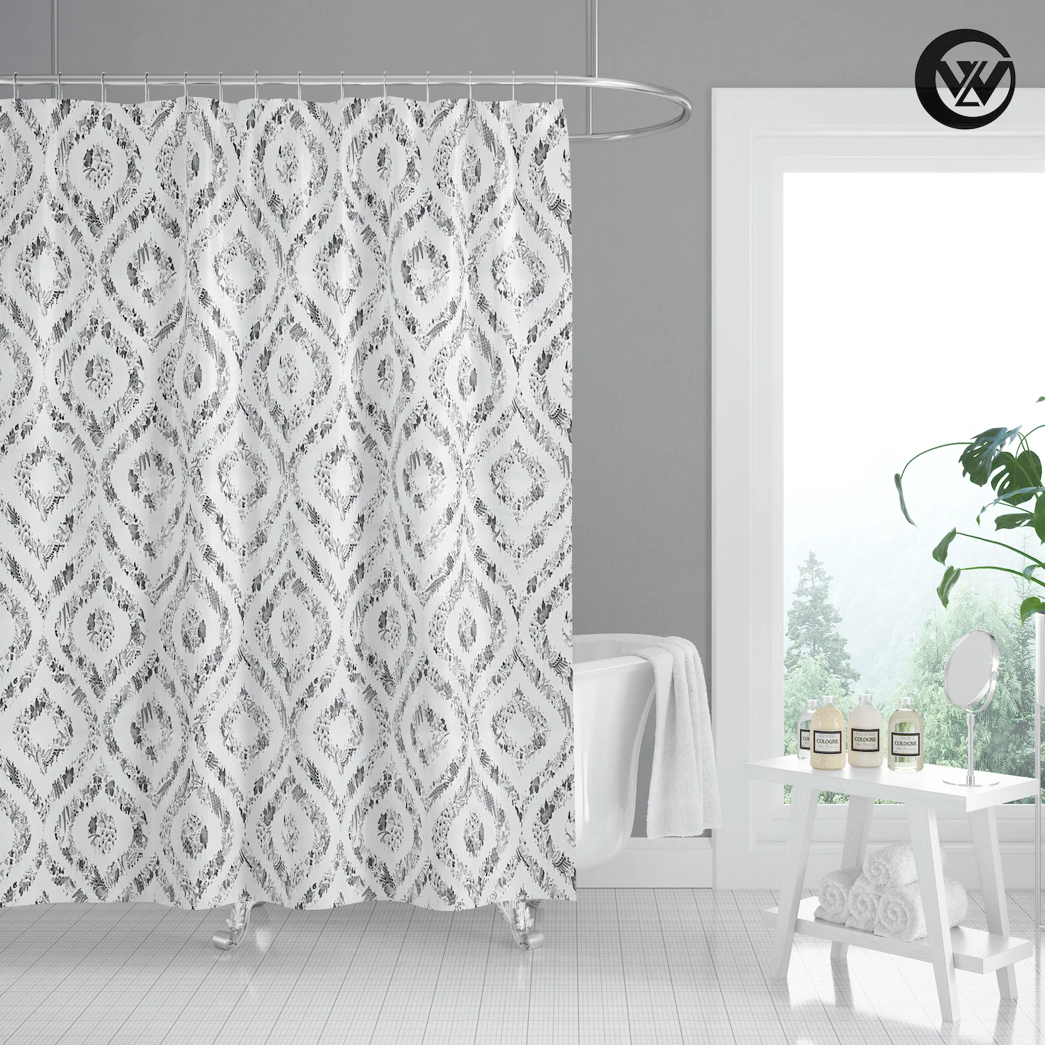 3. Принт с уникальным рисунком, драпировка придает чистый свежий вид вашей ванной.