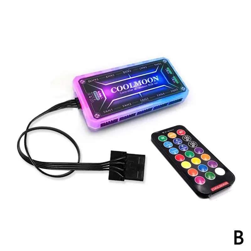 Вентилятор RGB, панель управления, пульт дистанционного управления, необходимо использовать вместе, контроллер может подключать до 10 вентиляторов, крутой внешний вид, несколько режимов: монохромное дыхание, многоцветное дыхание, мигание медленное мигание, режим беговой воды, режим гонок, автоматическое дыхание, режим погони