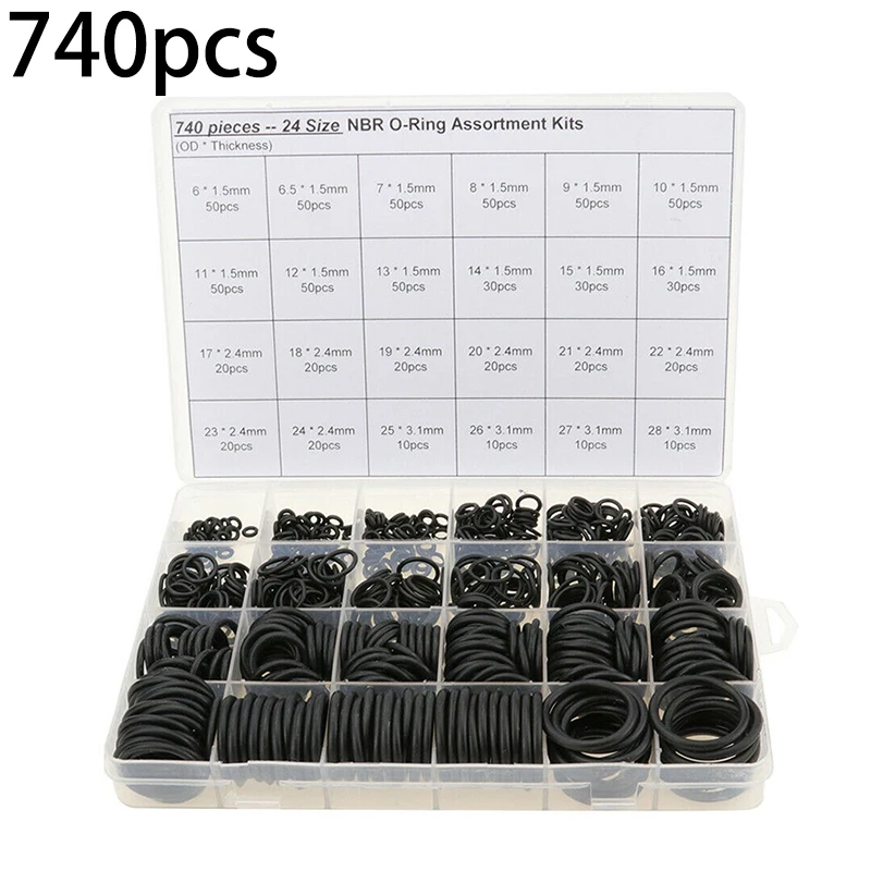 740 шт уплотнительные кольца резиновые силиконовые уплотнительные кольца NBR уплотнительные кольца нитриловые шайбы резиновые уплотнительные кольца ассортимент набор коробочных колец