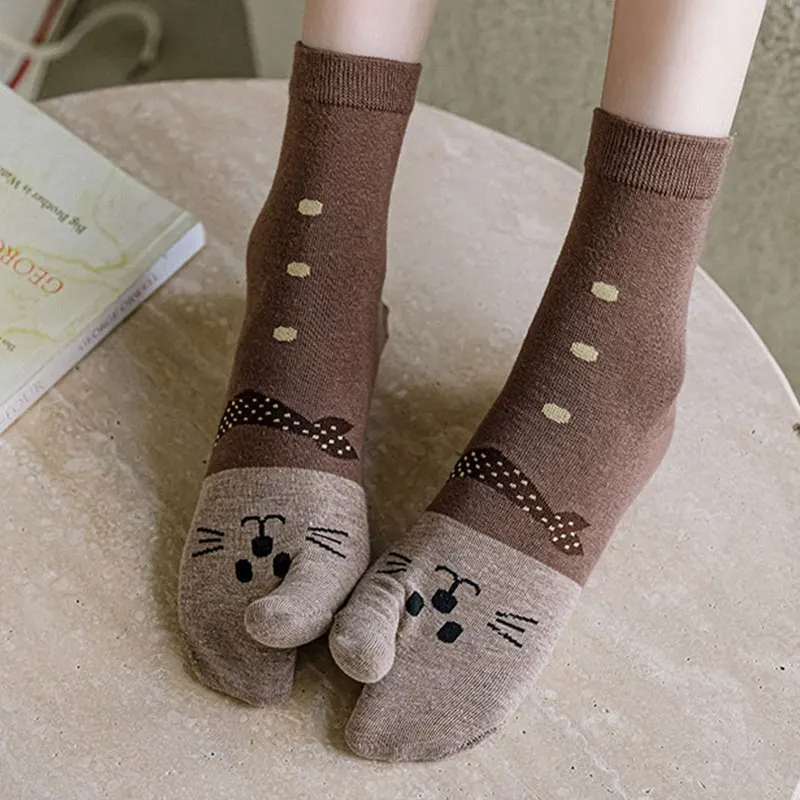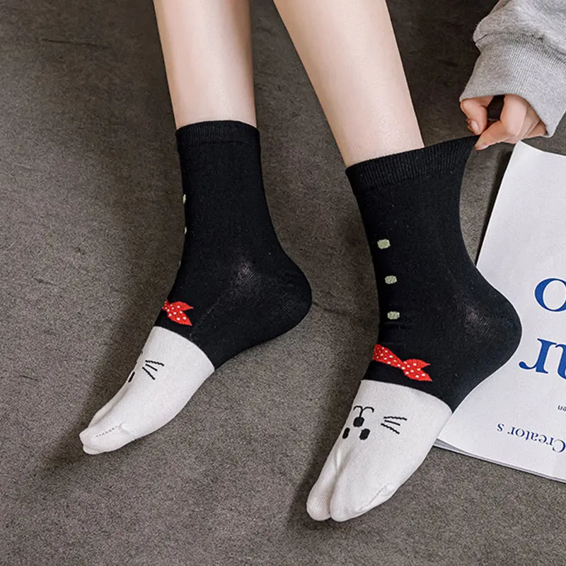 Наименование товара: женские хлопковые носки с раздельным носком; Носки с двумя пальцами и рисунком кота