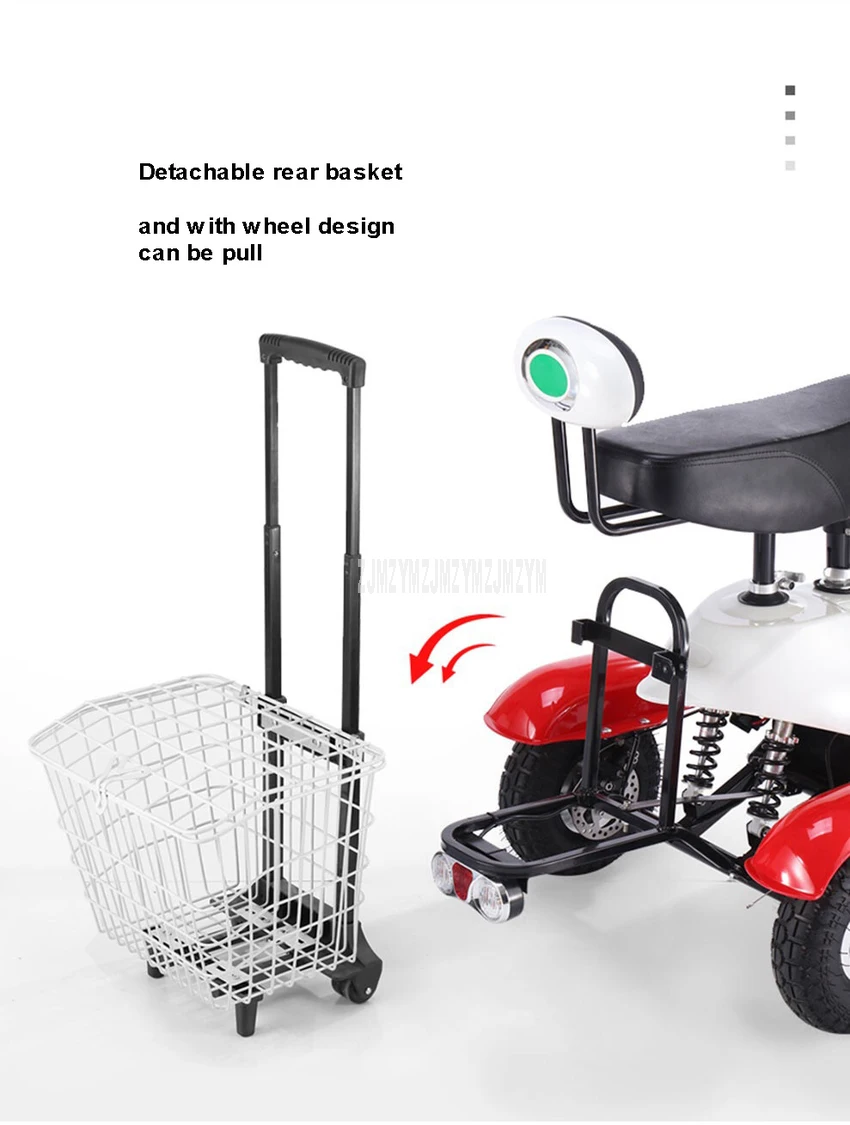 Характеристики: Название: трехколесный электрический скутерНапряжение зарядного устройства: 110-220 ВМощность: Бесщеточный 500 ВтБатарея: 48V 12Ah свинцово-кислотная батарея/48V 12Ah литиевая батарея/48V 15Ah литиевая батарея (опционально) Максимальный Пробег: (в зависимости от веса, состояния дороги, скорости, погоды и других факторов)48V 12Ah свинцово-кислотная батарея: 20-30 км48V 12Ah литиевая батарея: 20-30 км48V 15Ah литиевая батарея: 30-40km Время зарядки: 5-6 часовМаксимальная скорость: 30 км/ч (3 уровня, можно определить)Шина: Передняя 2 дюймовая вакуумная шина, Задняя 2 дюймовая надувающаяся шинаТормоза: передние и задние дисковые тормозаАмортизация: передняя и задняя амортизацияРазмер изделия: 151*68*101 смЦвет: красный, черный, белый, белый, красный, полный красный (опционально)Максимальный вес нагрузки: 200 кг Посылка включает в себя:1x трехколесный электрический скутерАксессуары: зарядное устройство, зеркало заднего вида, детское сиденье, тканевая корзина, инструменты