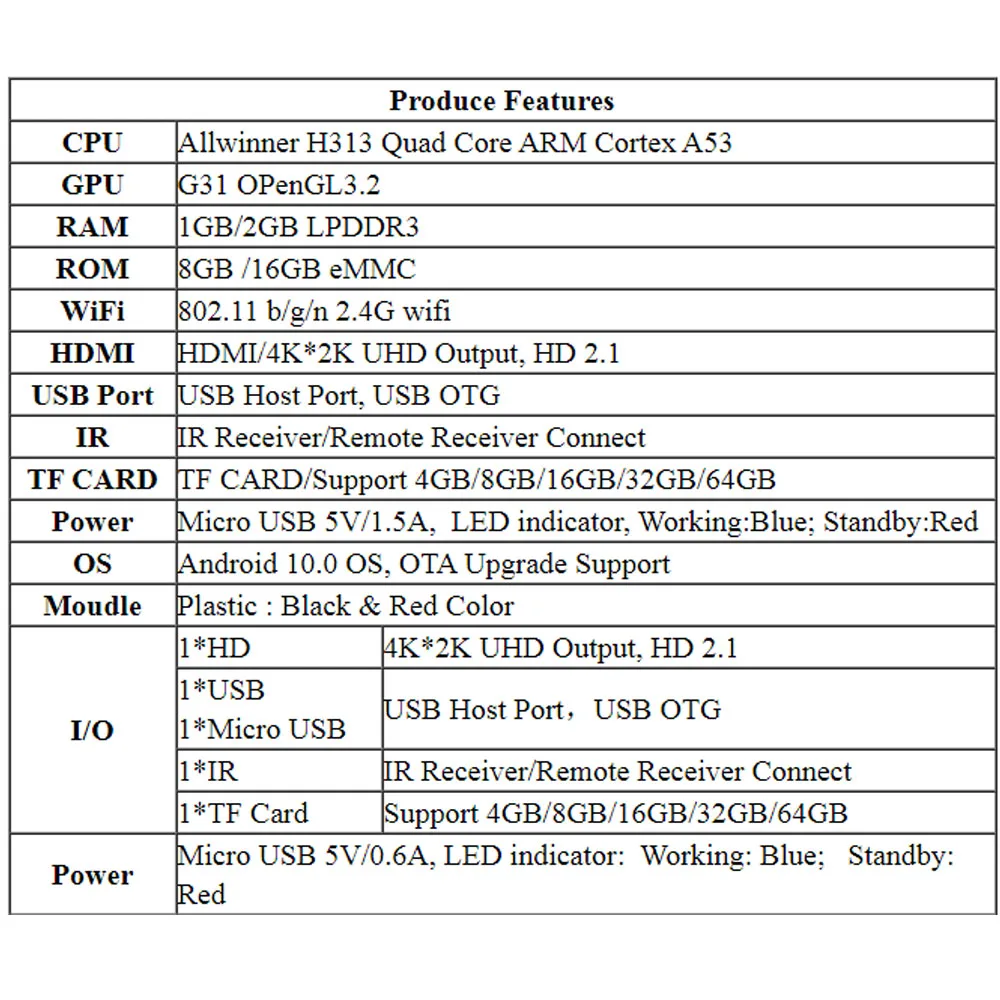 CPU: Allwinner H313 Quad Core ARM Cortex A53