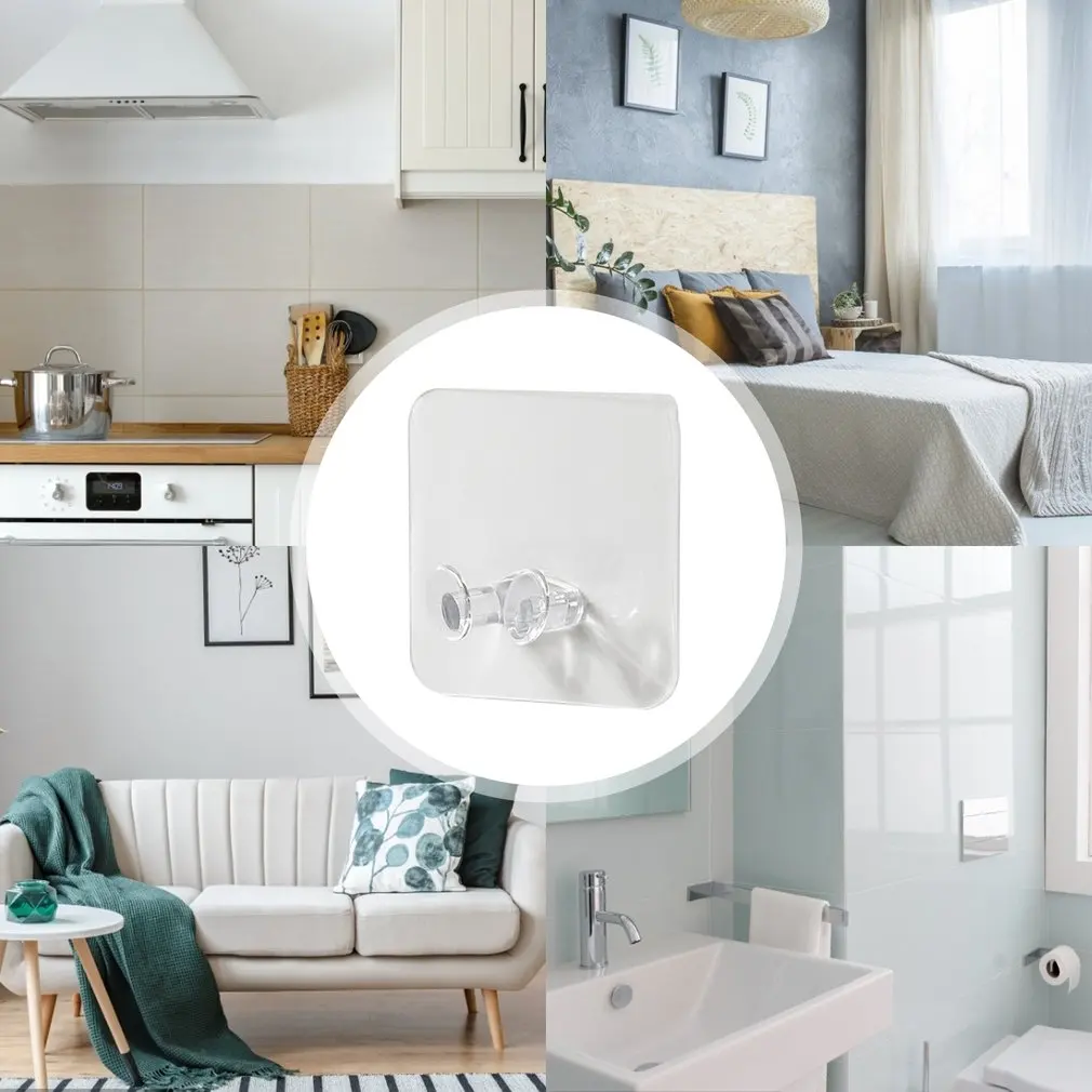Features: 1. Compact and portable: being so mini and light-weight, this product does not take much space and can be easily taken away. 2. Seamless viscose with strong viscosity: waterproof and moisture-proof, suitable for various wall materials. 3. Durable material: This product is made of high-quality material, durable, long service time, firm and stable in use. Descriptions: Seamless back design, strong adhesion and reusability. Easy to use and easy to accept. Specifications: Color: transparent Material: PVC Size: 60 * 60 * 20mm Package Included: 1 * hook