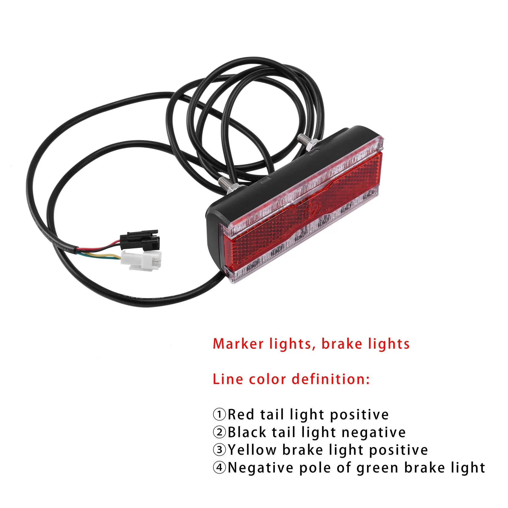 100% brand new and high quality Made of high-quality material, durable and practical to use E-bike taillight for 24V / 36V / 48V e-bikes Cable length is 1.5m The taillight can be connected to the controller or directly to the battery. Color: Red + Black Material:plastic Package Contents: 1 x Bike Tail Light Only the above package content, other products are not included. Note: light shooting and different displays may cause the color of the item in the picture a little different from the real thing. The measurement allowed error is +/- 1-3cm.