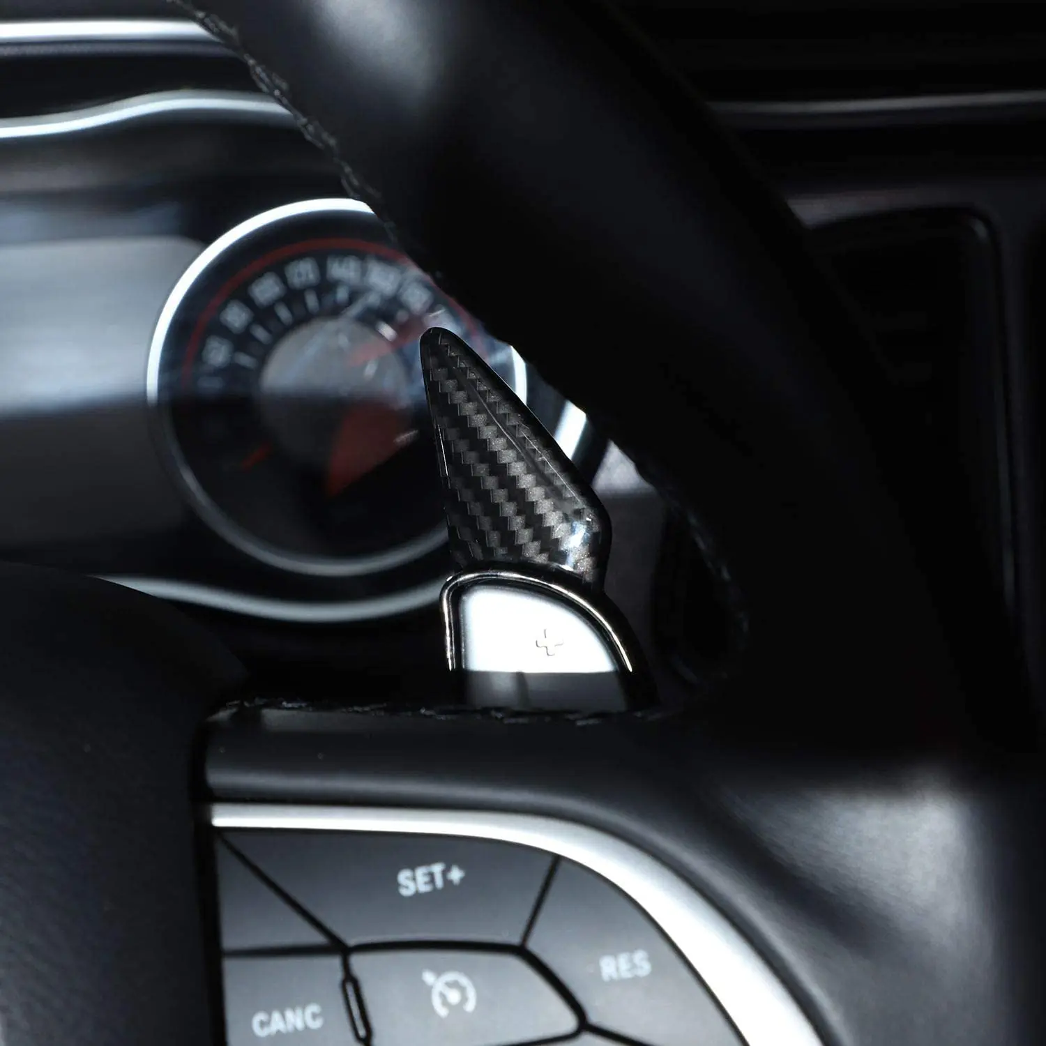 Completely changed the interior looks, it just slip over the knobs Knobs and fits perfect. Provides a high class and fashion decor style for your car, change the ordinary interior design and add unique color. It can cover existing scratches and prevent your car from scratch and abrasion. Strong and stable, don't worry about it falling down while driving. Provides a high class, unique and fashion decor style for your car, help you more quickly and easily to use the shift paddle, prevent your paddle from scratch and provide a clean and comfortable hand feeling. NOT FIT SRT Version For Dodge Challenger 2015-2020, For 2015-2020 Dodge Charger For Dodge Durango 2015-2020 For 2015- 2020 Chrysler 300, Chrysler 300s Product name: Paddle shifter Type: Car Accessories Color: Carbon fiber + black Material:Aluminum alloy Package Contents: 2 x Paddle shifter Only the above package content, other products are not included. Note: light shooting and different displays may cause the color of the item in the picture a little different from the real thing. The measurement allowed error is +/- 1-3cm.