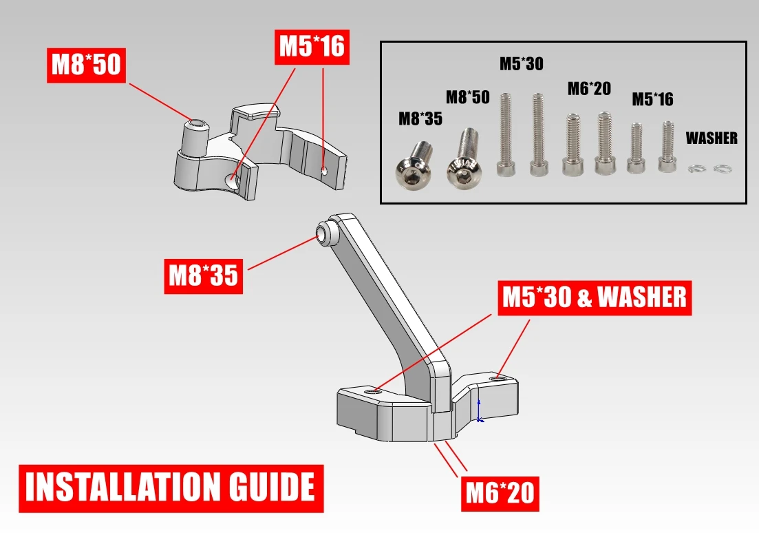 * Убедитесь, что все винты затянуты перед ездой. Я настоятельно рекомендую вам покрасить винт клеем на винты для усиления соединений и уменьшения вибрации. Я не предоставляем винтовой клей, вы должны купить это у других продавцов.