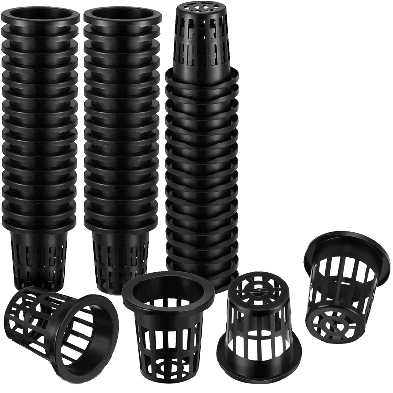 100 Pack 1.77 Inch Net Cups Slotted Mesh Wide Lip Filter Plant Net Pot Bucket Basket for Hydroponics Aquaponics Orchids