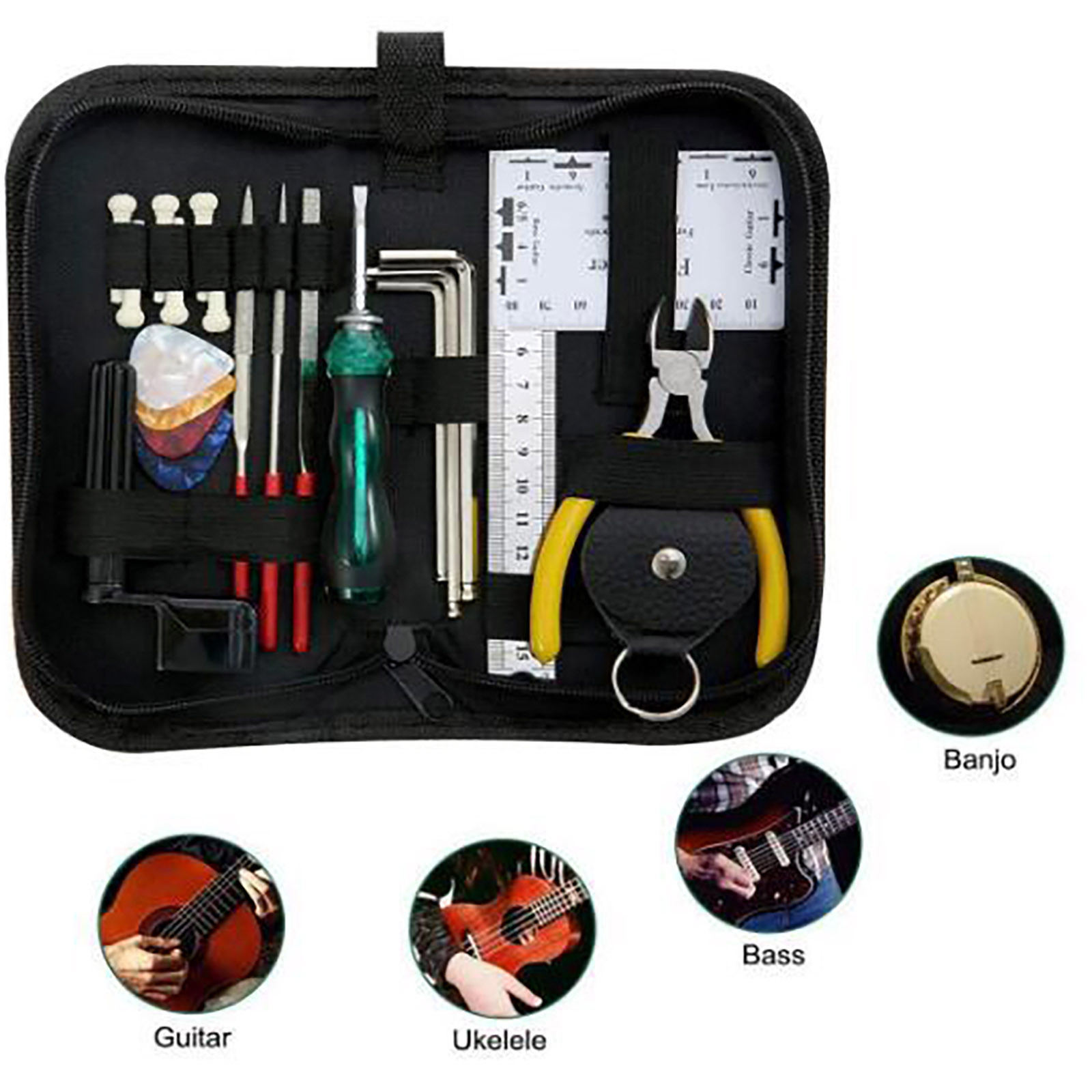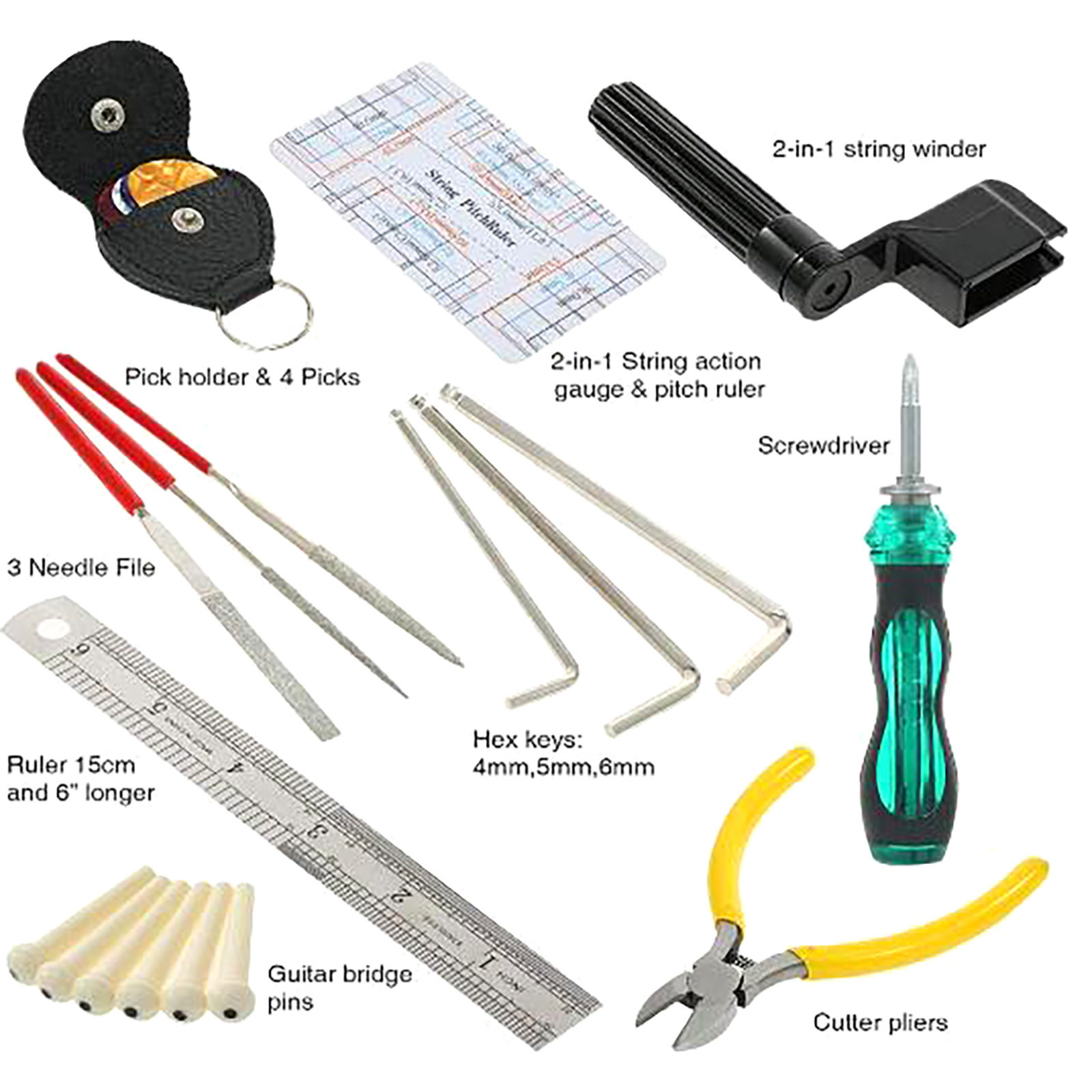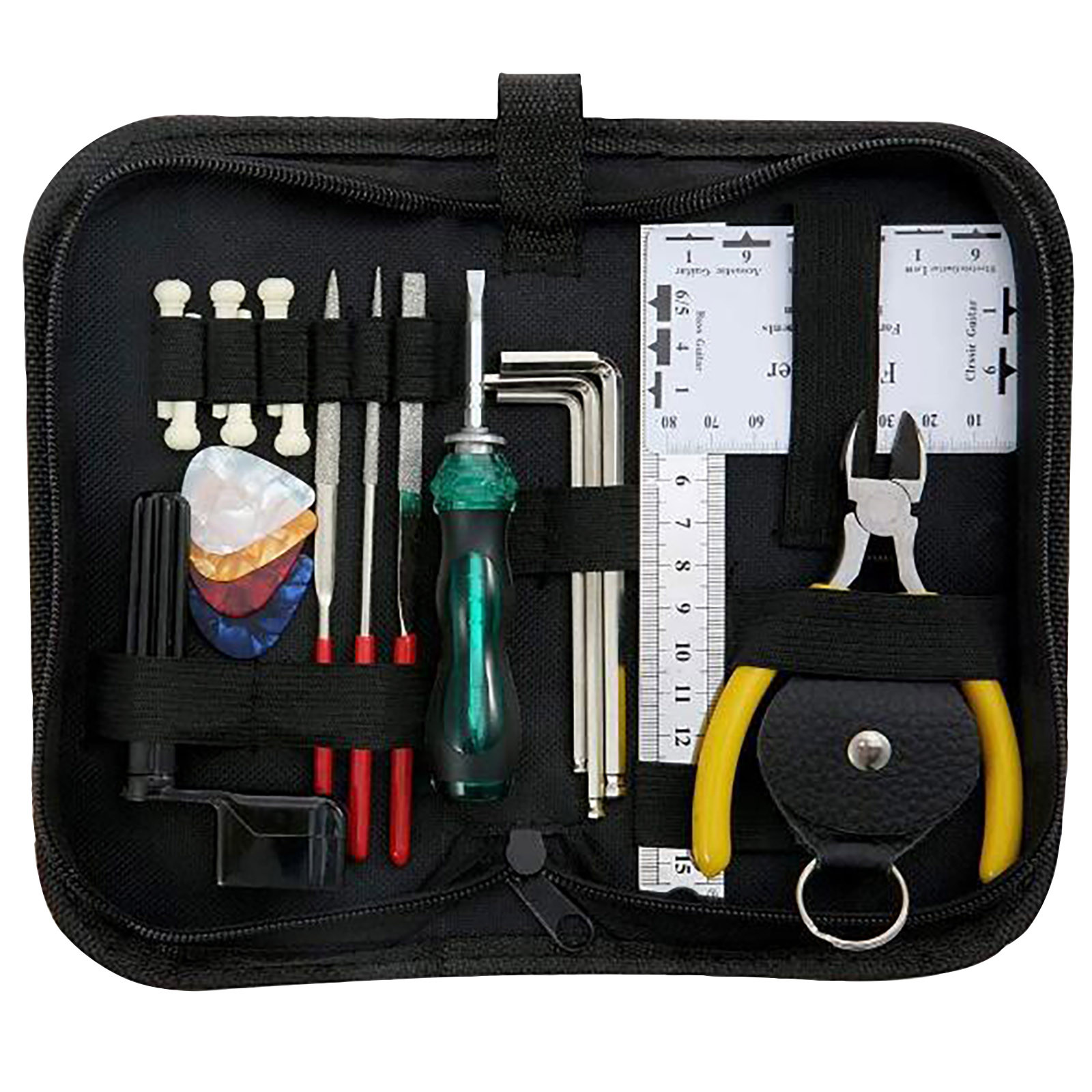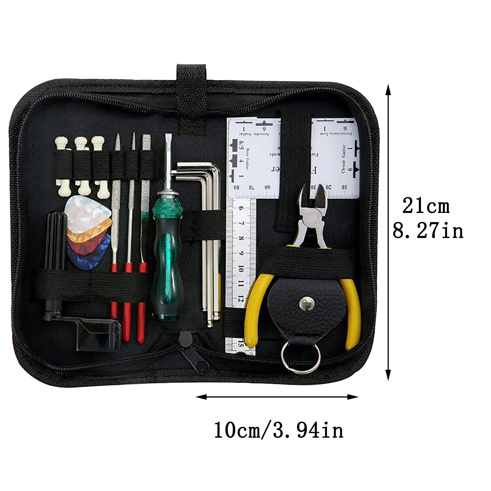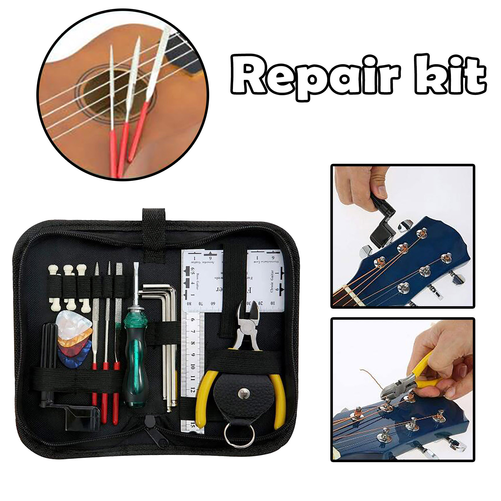 Помимо гитариста, вы также первый техник для своего инструмента. Самое основное из ноу-хау в обслуживании гитары-это обязательная Настройка струн, очистка гитары или изменение седла и гайки. И вам нужны необходимые инструменты для выполнения этих задач. Вот где этот набор инструментов для ремонта и обслуживания гитары может быть удобным.Размер: как показано