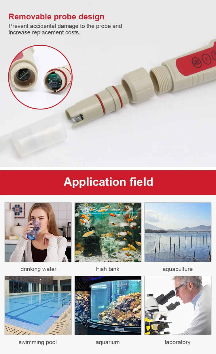 Автоматическая калибровка рН-метр-с высокой чувствительностью стекло зонда, вы можете получить полный диапазон измерения 0-14pH, 0,01 pH разрешение. И рН-метр использует 3-точечный метод калибровки, калибровки электрод решение этих проблем должно основываться на pH 4,00, pH 6,86 и pH 9,18, вы можете выполнить калибровку без усилий, чтобы обеспечить точность по вашим меркам.