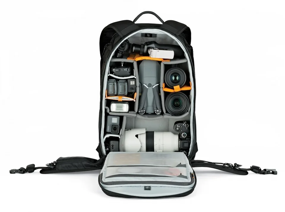 Носите один или два Pro DSLRs, в том числе один с прикрепленным объективом 70-200 мм f/2,8, в этом черномProTactic 450 AW II рюкзак для камеры и ноутбукаОтLowepro. Обновленная с первого поколения, чтобы расширить свою защиту и универсальность, эта сумка также будет вмещать восемь дополнительных объективов или вспышки, а также штатив и 15 дюймовый ноутбук. Четыре точки доступа сверху, сбоку и сзади помогут вам организовать снаряжение и быстро взять его, чтобы получить снимок. Создание индивидуальных конфигураций с системой ремешков и регулируемыми внутренними разделителями.