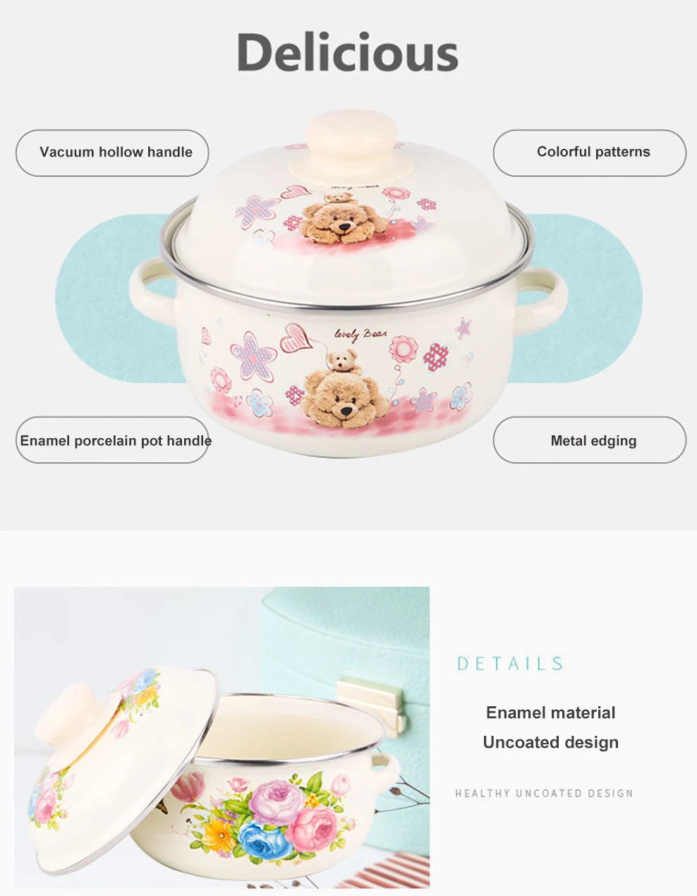 Утолщенная кастрюля с двойными ушами 1,6л фарфоровая эмалированная миска для супа с крышкой миска для лапши Индукционная Плита горшок