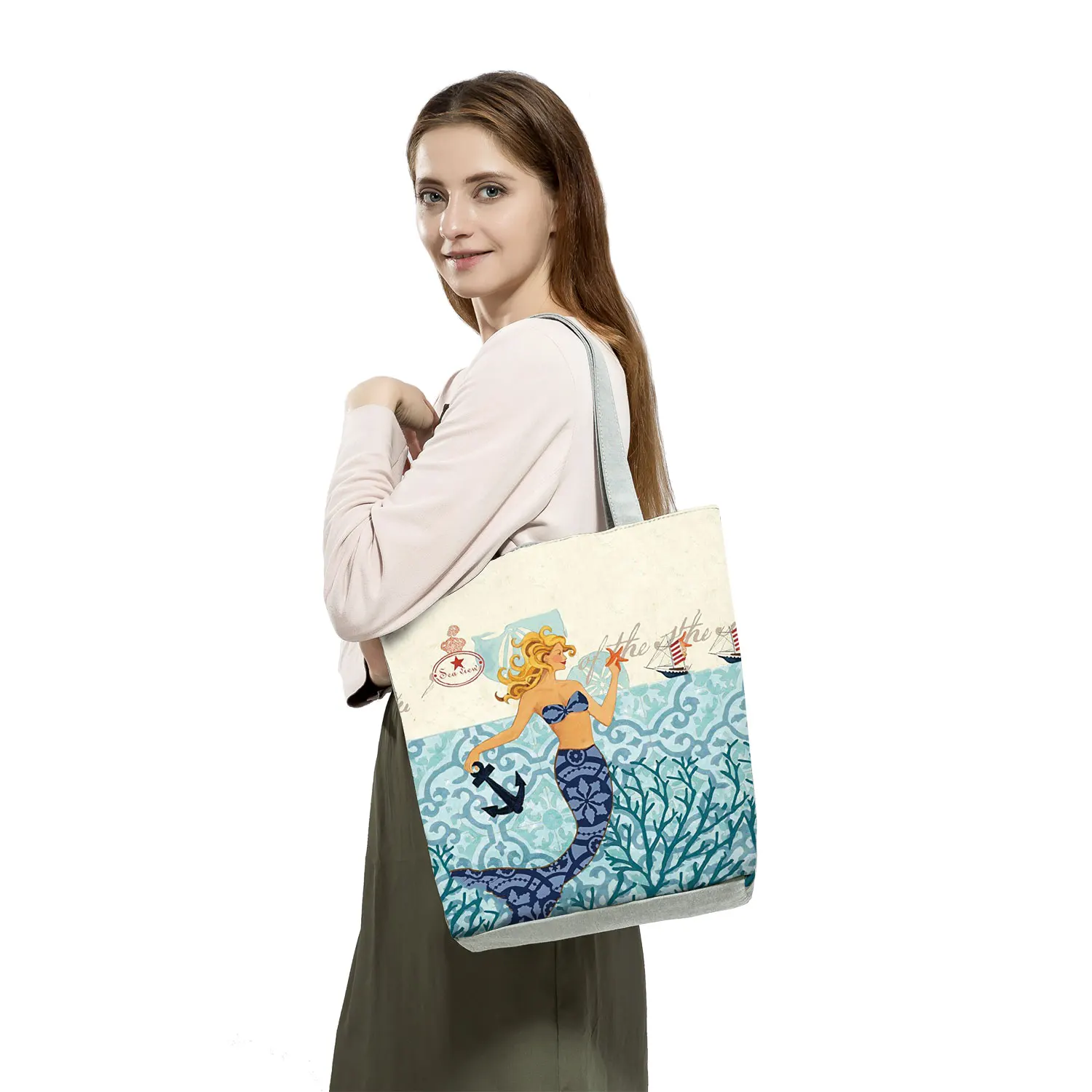 Индивидуальная сумка-тоут для покупок, модная женская сумка с рисунком русалки, дорожная сумка через плечо, складывающиеся многоразовые сумки для покупок