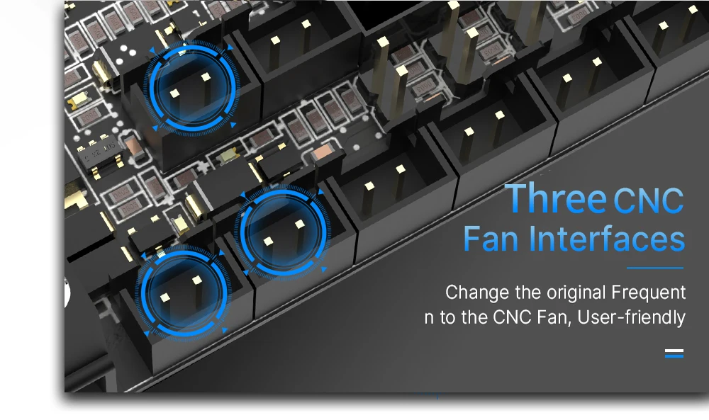 Поддержка 2 выхода нагревательного стержня (нагревательный стержень, Горячая кровать). Поддерживает Трехходовой управляемый выход вентилятора. Поддержка 4-полосная концевой выключатель.