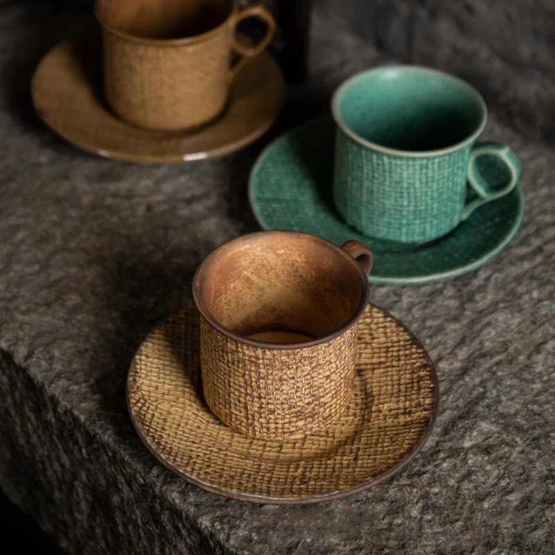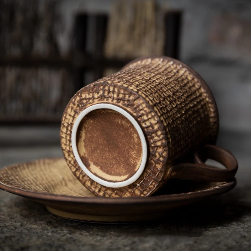 2. Грубые керамические кофейные чашки, японские Ретро чашки костюма и блюдца, размер и емкость подходят для домашнего или офисного использования.