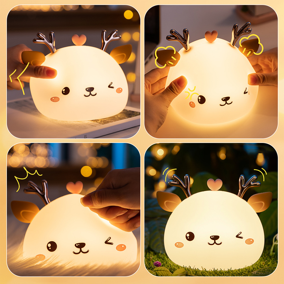 【Силиконовый материал 】 Ночная лампа оленя изготовлена из экологически чистого силикона, безопасного и качественного питания. Он имеет мягкое прикосновение и дарит Малышам и детям приятное настроение. Это лампа для здорового сна, которая отгоняет темноту.