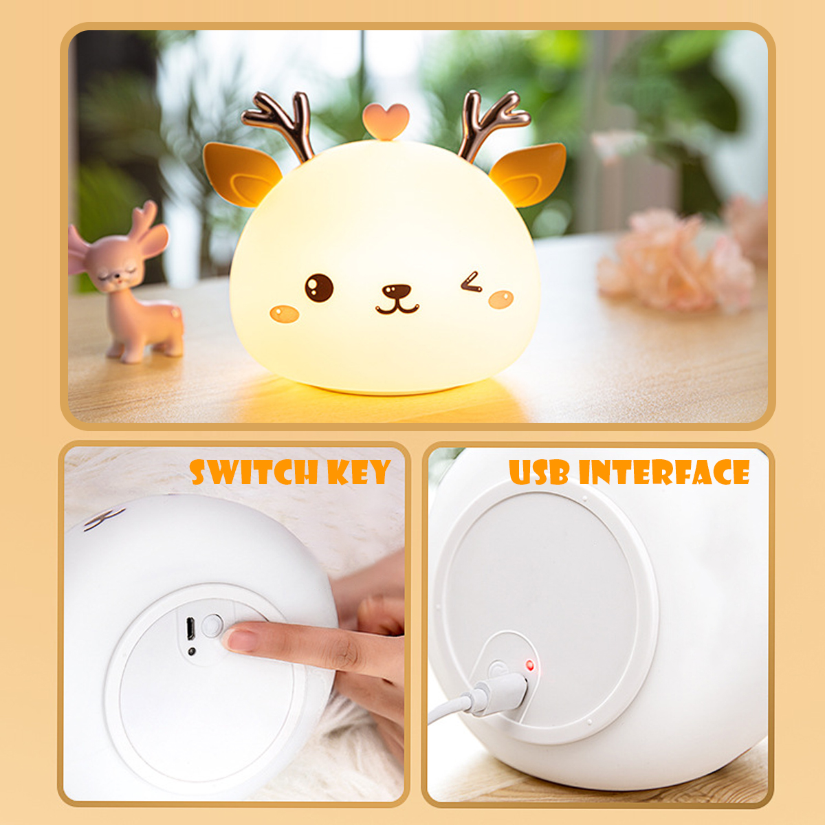 Название продукта: силиконовый Детский милый Ночной светильник с оленем