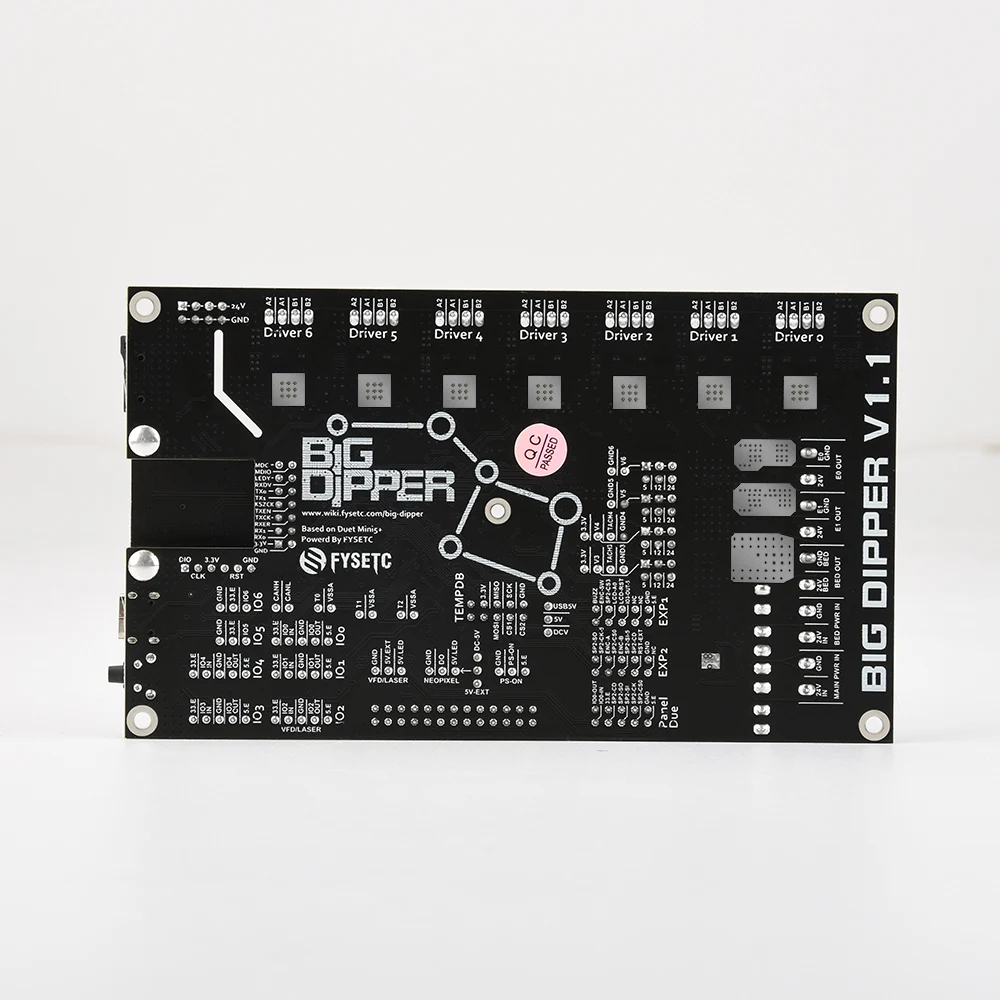 Big Dipper-это комбинация duet3 mini5 + и Mini 2 +. Его основной контроль и распределение штифта полностью соответствуют mini5 +, а прошивка mini5 + может использоваться напрямую. В то же время, блок питания и защита IO были модернизированы в определенной степени, чтобы сделать его более безопасным. Переключение между версией Wi-Fi и версией Ethernet может быть осуществлено путем замены модуля. WiFi поддерживает внешнюю антенну.