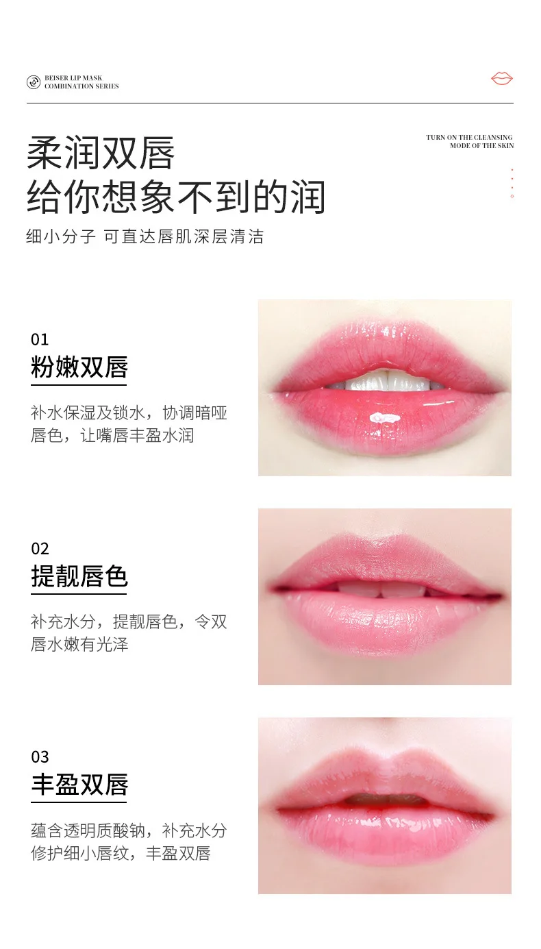 03. Полные губы: содержит гиалуронат натрия, пополняет воду, восстанавливает мелкие линии губ и пухлые губы