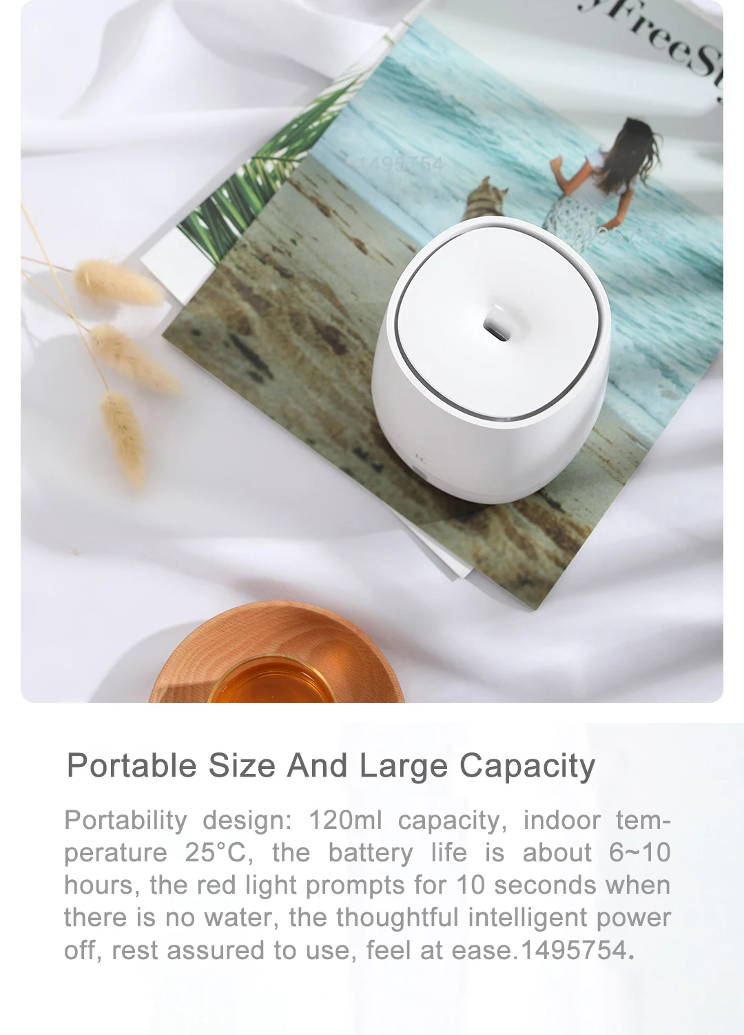 Емкость 120 мл, работает в течение 6-10 часов. При нехватке воды красный светильник подает запрос в течение 10 секунд, и мощность будет отключена разумно.