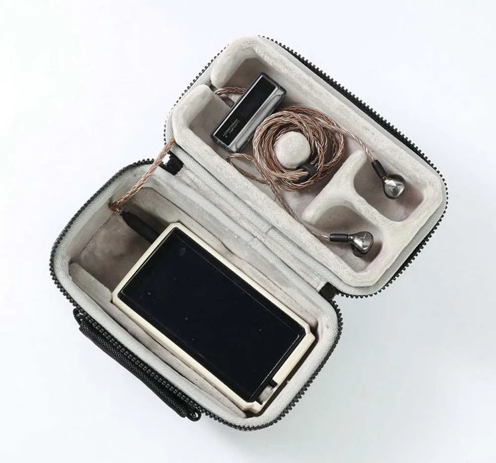 Этот чехол решает проблемы, связанные с тем, что наушники должны быть отключены для хранения. Верхний слой является более разумным, с глубиной 40 мм, которая может вместить почти 99% наушников, а также оставляет место для усилителя.