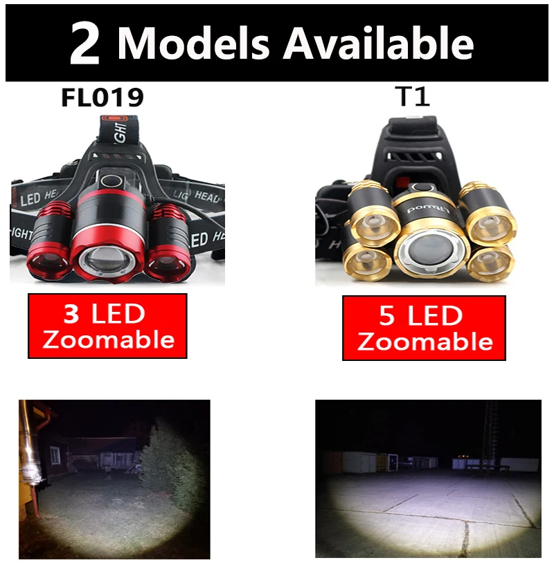 1: Этот продукт разделен на три модели. Вы можете выбрать 5 светодиодный налобный фонарь с масштабируемым, или вы можете выбрать 3 светодиодный налобный фонарь с масштабируемым или фиксированным фокусом.