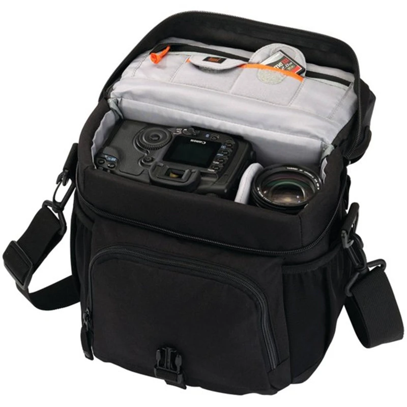 Сумка для камеры серии Nova AW, поэтому вы больше не можете наслаждаться съемкой из-за погоды, она оснащена крышкой AW 360 ° для любой погоды (запатентованная дождевик на 360 градусов), может полностью защитить ваше оборудование во время работы. Сумка для камеры серии может вместить самые популярные цифровые SLR камеры и линзы, карты памяти и аксессуары. Перекрещивающаяся окрашенная ткань демонстрирует богатый идеальный цвет. Его особенности включают в себя: защитный чехол, двойные карманы для карт памяти, передний вспомогательный карман, сетчатые боковые карманы и для обеспечения комфорта и долговечности с подкладом и ручками. Модели 140, 160 и 170 оснащены подвесным кольцом для ремня, а модели 180, 190 и 200 могут быть оснащены колесами через багажную машину. 140160170 ремешок немного тоньше и немного больше, чем у двух, 190 и 200 моделей оснащены более прочными ремешками Lowepro CollarCut.