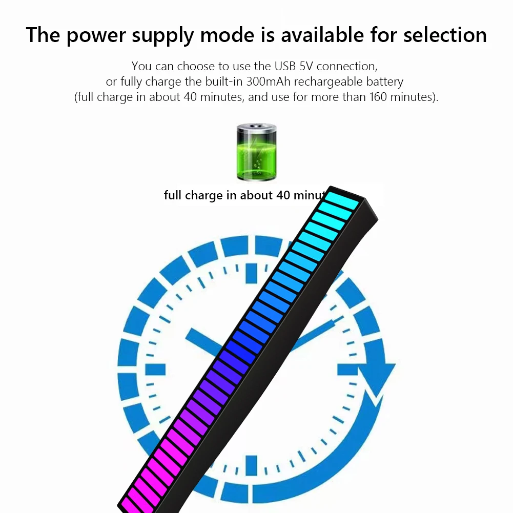 Волшебная музыкальная лампа для пикапа RGB со звуковым управлением принимает корпус из АБС-пластика, а внутри используются 32 красочные лампы, которые сочетаются с микрофоном, предназначенным для музыки для реализации динамической музыки и звукового поля. Встроенный аккумулятор большой емкости, который может использоваться после запуска.