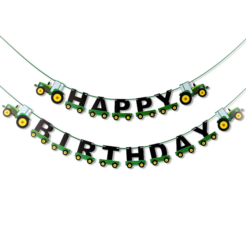 Зеленые вечерние украшения для трактора, для экскаватора, транспортного средства, с днем рождения, баннер, гирлянда, кекс, Topper, 1-2 вечерние украшения