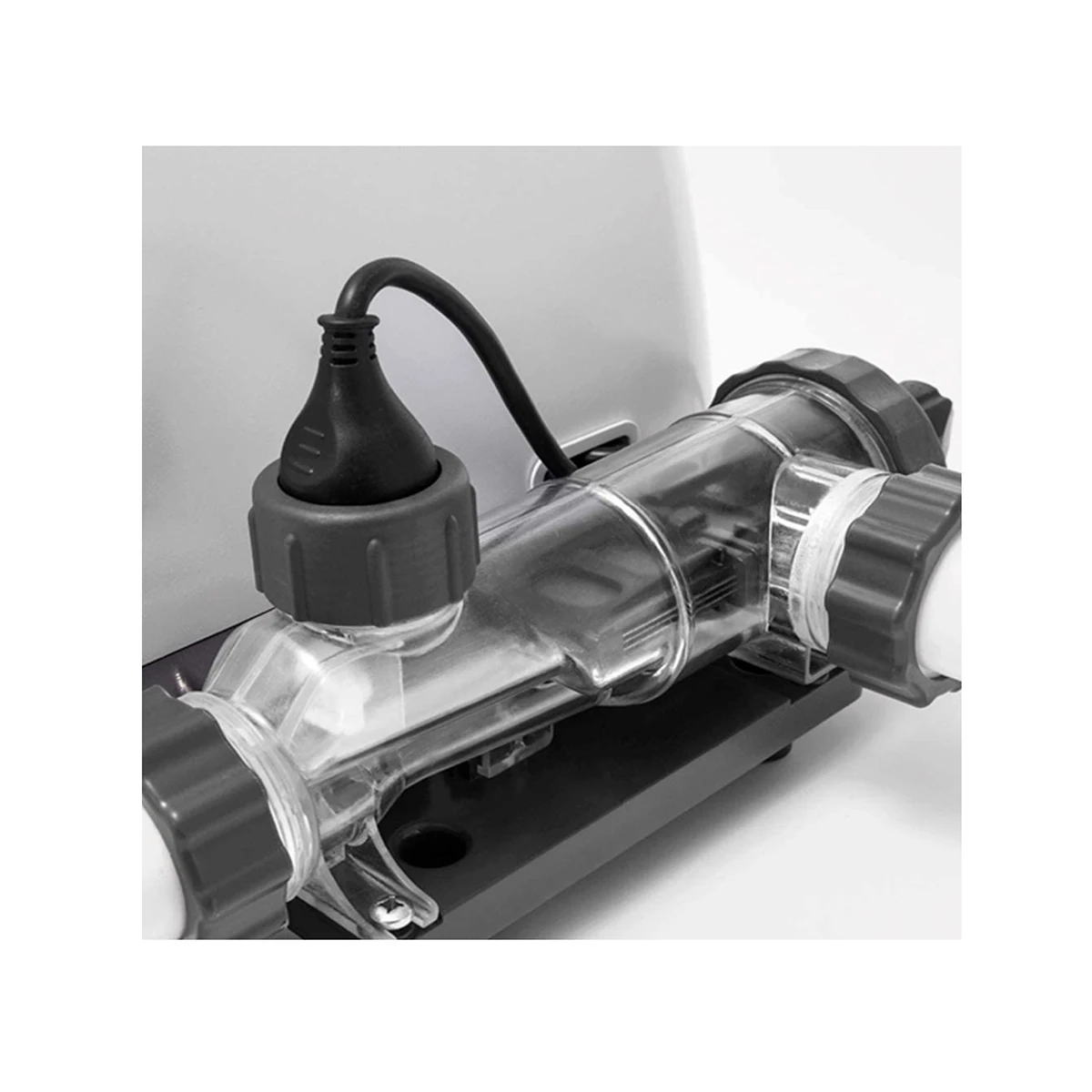 Хлоргенератор Intex 26670 – новая компактная модель, предназначенная для обеззараживания воды и предотвращения ее цветения в бассейнах объемом до 56800 л. Требуемая производительность фильтра составляет 2650-11355 л/ч. Используемый реагент – поваренная соль. Из нее в процессе ионизации в хлоргенераторе образуются ионы хлора, являющиеся абсолютно безопасными для человека и губительными для различных микроорганизмов.